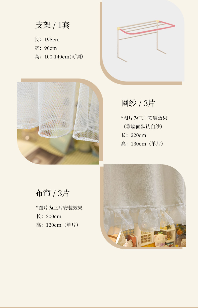 | Ширина кровати: | Высота занавеса 1,2 м [подходит для ширины ≤1m., Высота занавеса 1,5 м [подходит для широкого ≤1m кровати] |