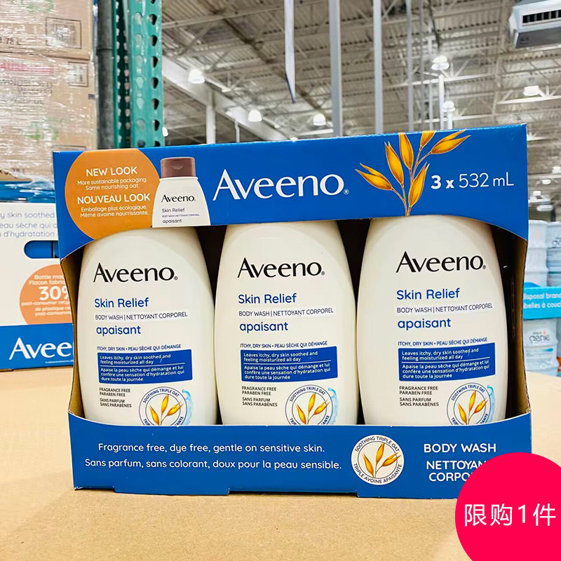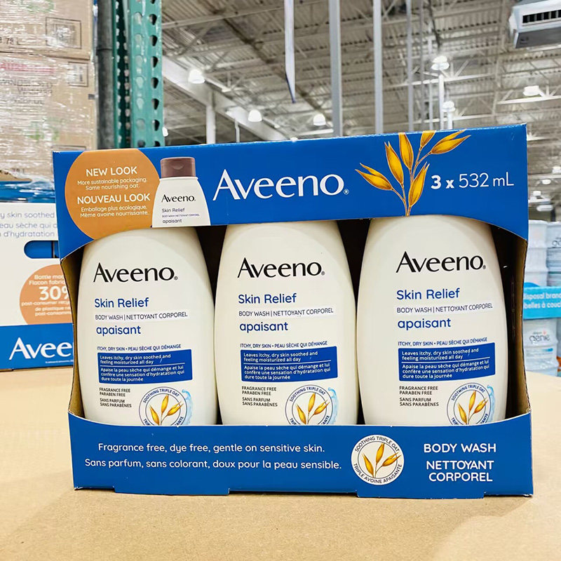 QF Ограниченная покупка 1 куска канадской доставки Aveeno Oat Essence, без аромата, успокаивающее гель для душа 532 мл x3