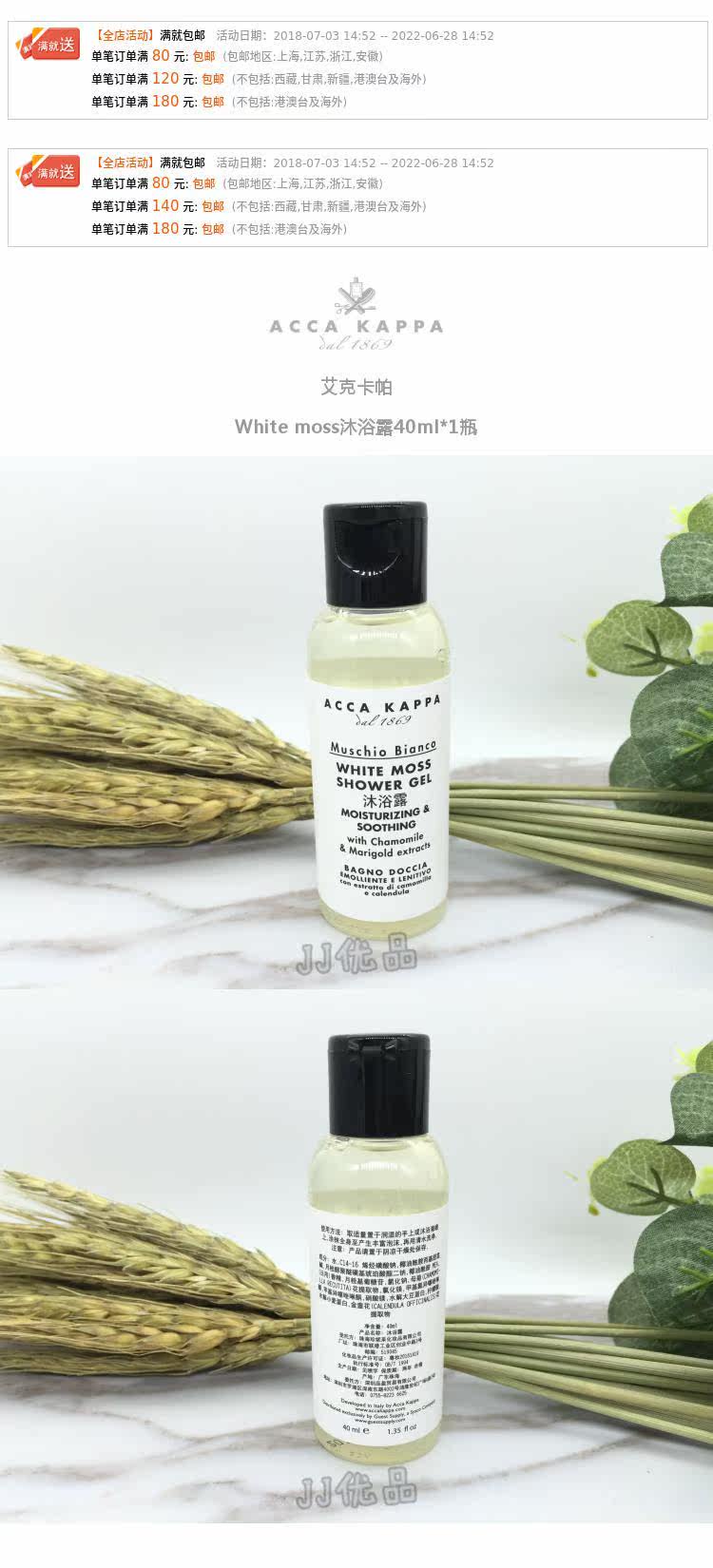 ACCA KAPPA Белый мох Белый мускус Гель для душа Grand Hyatt Hotel 40 мл