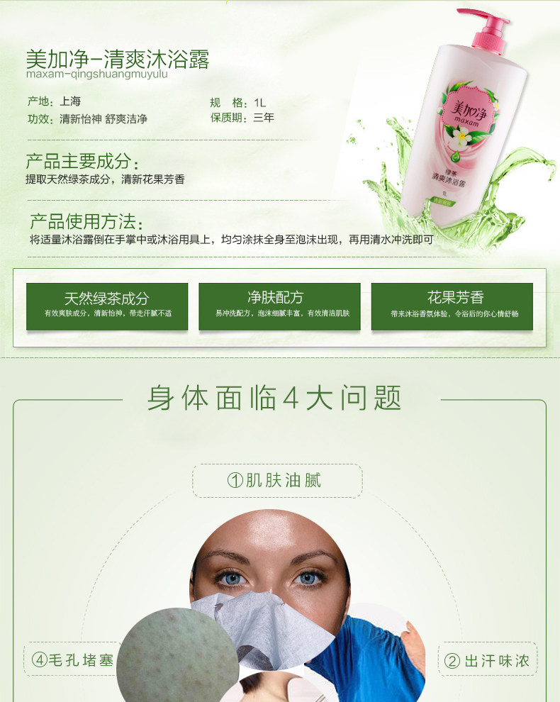 maxam/美加净 Освежающий гель для душа, эссенция для всего тела подходит для мужчин и женщин, 1000 мл