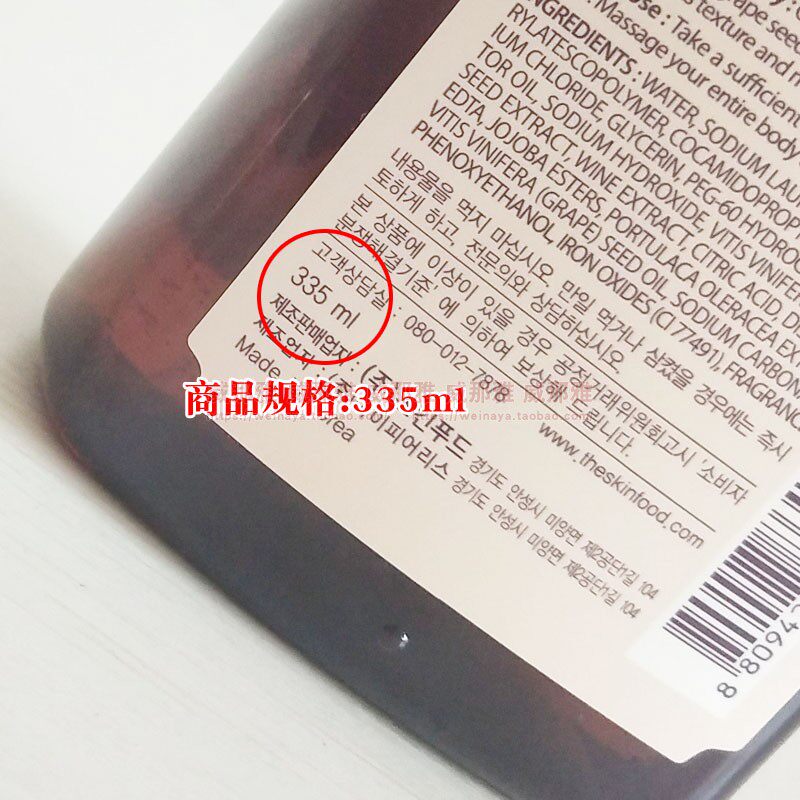 БЕСПЛАТНАЯ ДОСТАВКА Южная Корея Скинфуд, думая о коже, душевом геле -виноградном масле душевой душ молоко виноградный виноградный душ.
