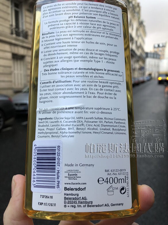 Французская покупка K Большая рекомендация Eucerin Отличная лесная ванна масла PH 5 Слабая кислота до куриной кожи гель для душа 400 мл