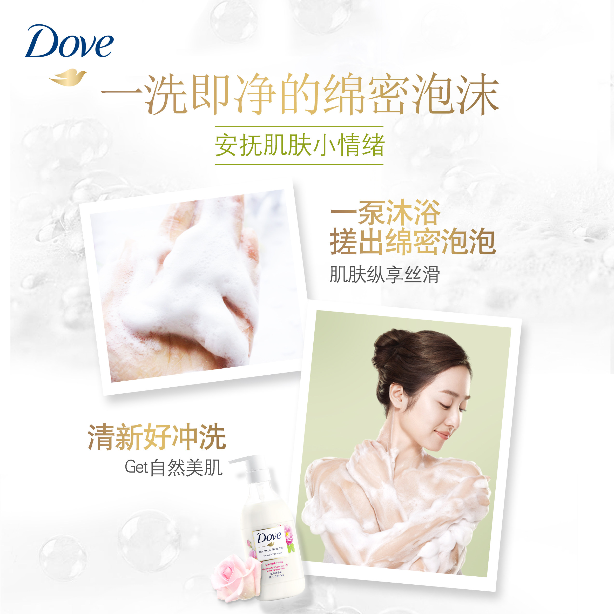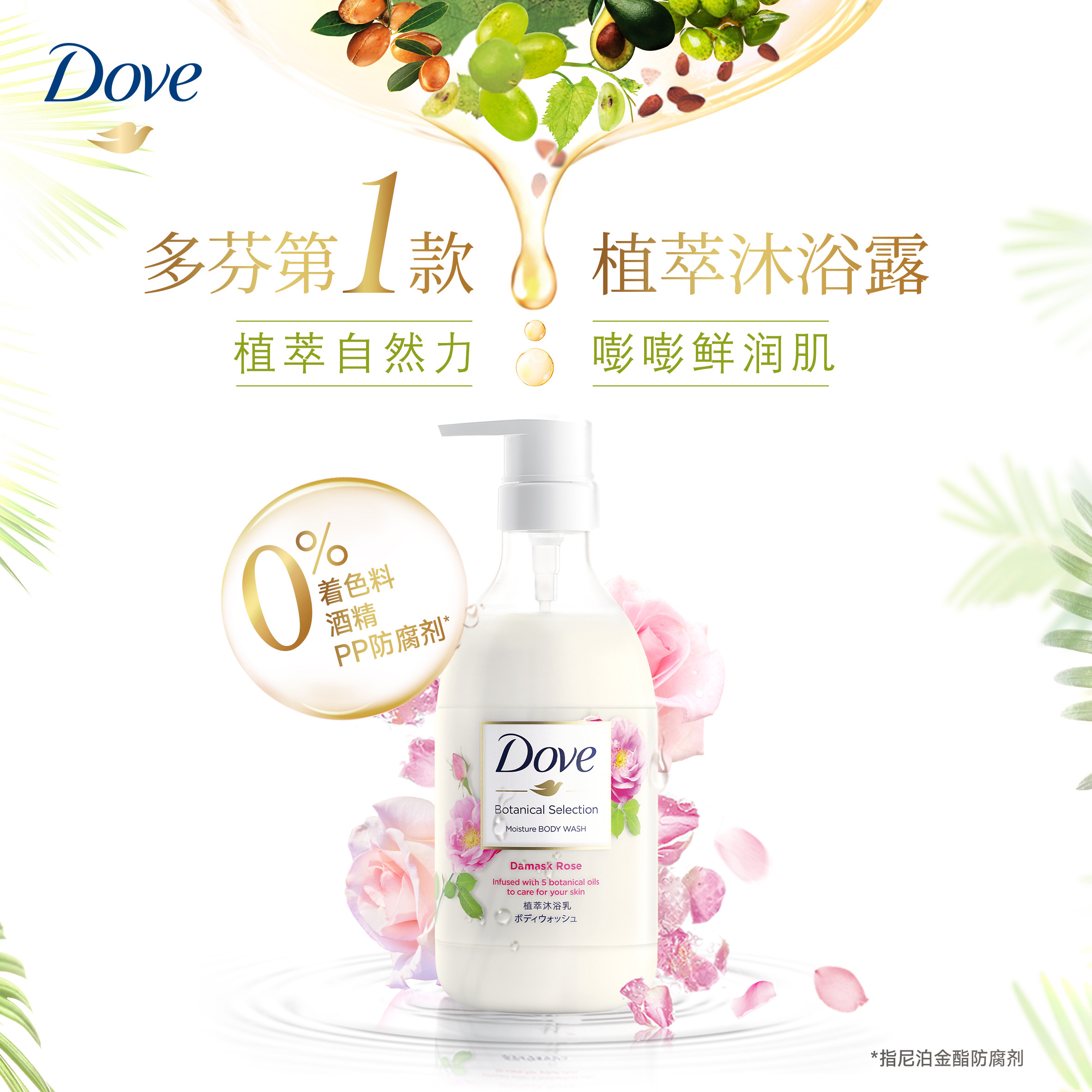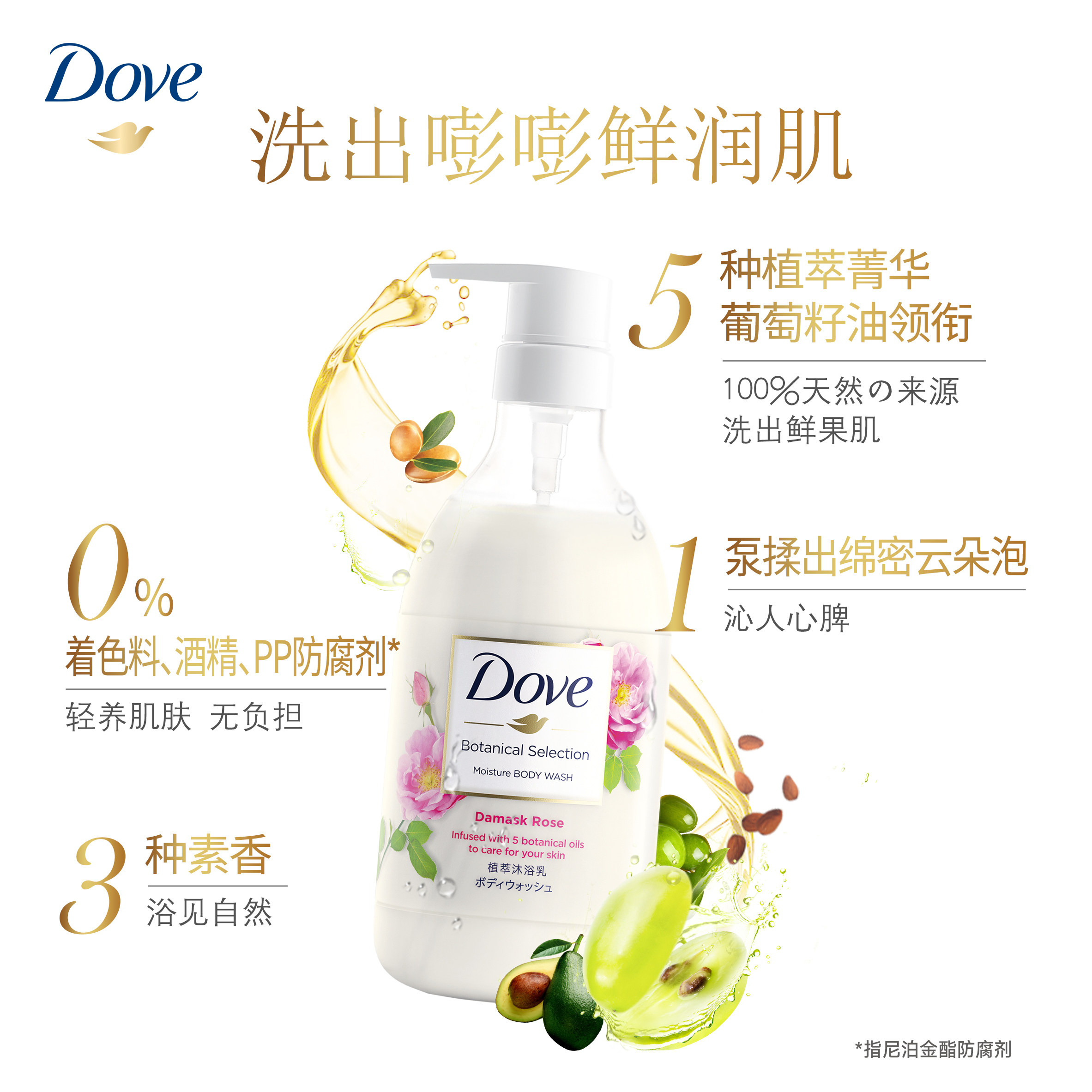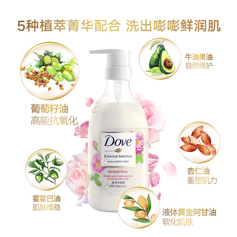Питательный гель для душа с розой в составе с экстрактом растений, японское увлажняющее масло семян, 500г