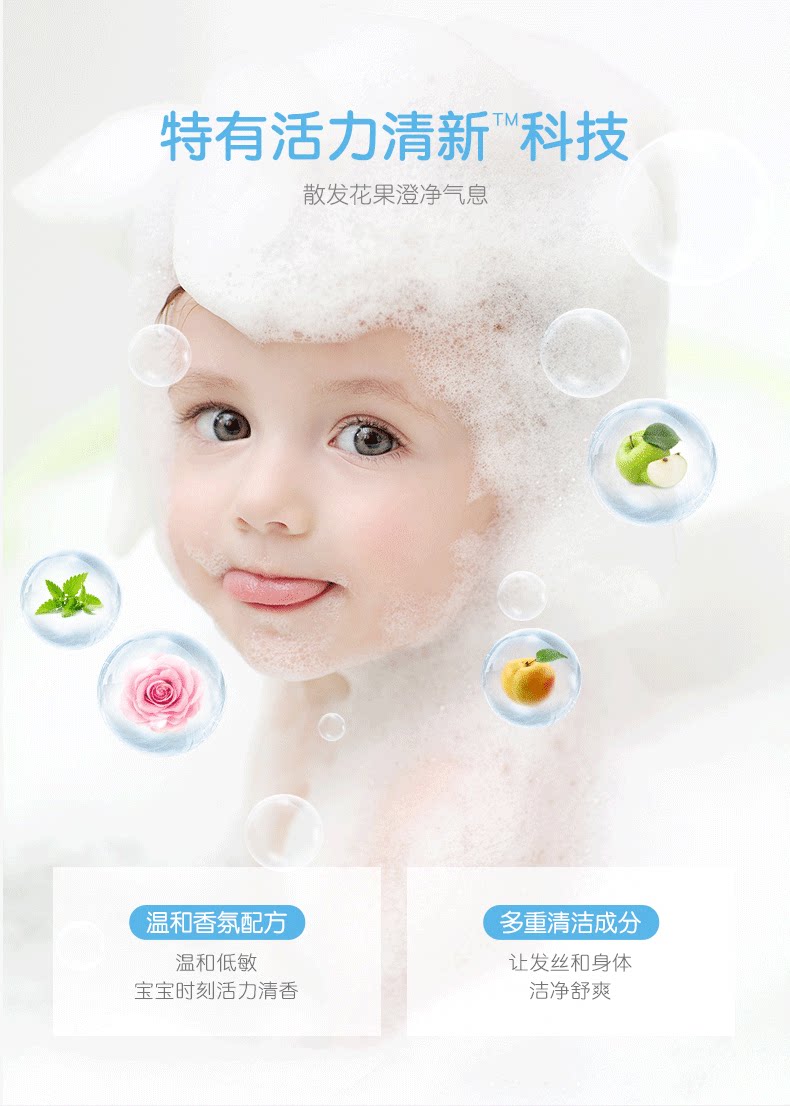 Детский свежий шампунь, освежающий мягкий гель для душа, 2 в 1