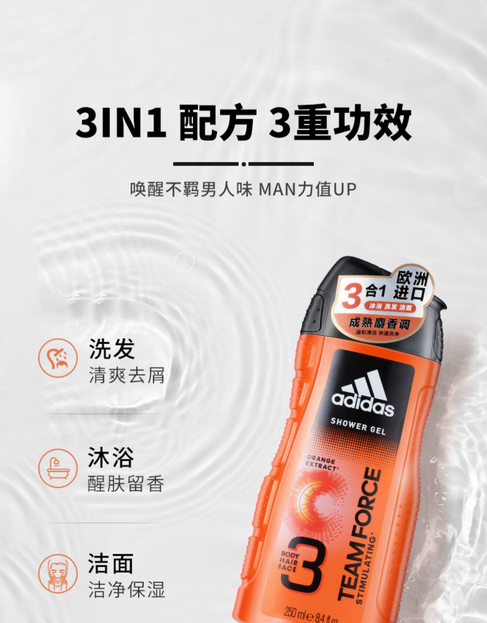 Adidas, мужские духи, освежающий гель для душа со стойким ароматом, 250 мл