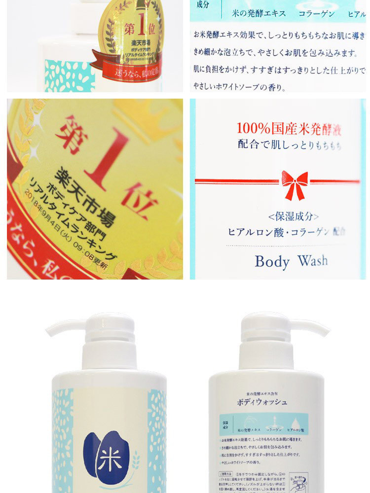 Японский рисовый детский гель для душа, лечебное очищающее молочко, 600 мл