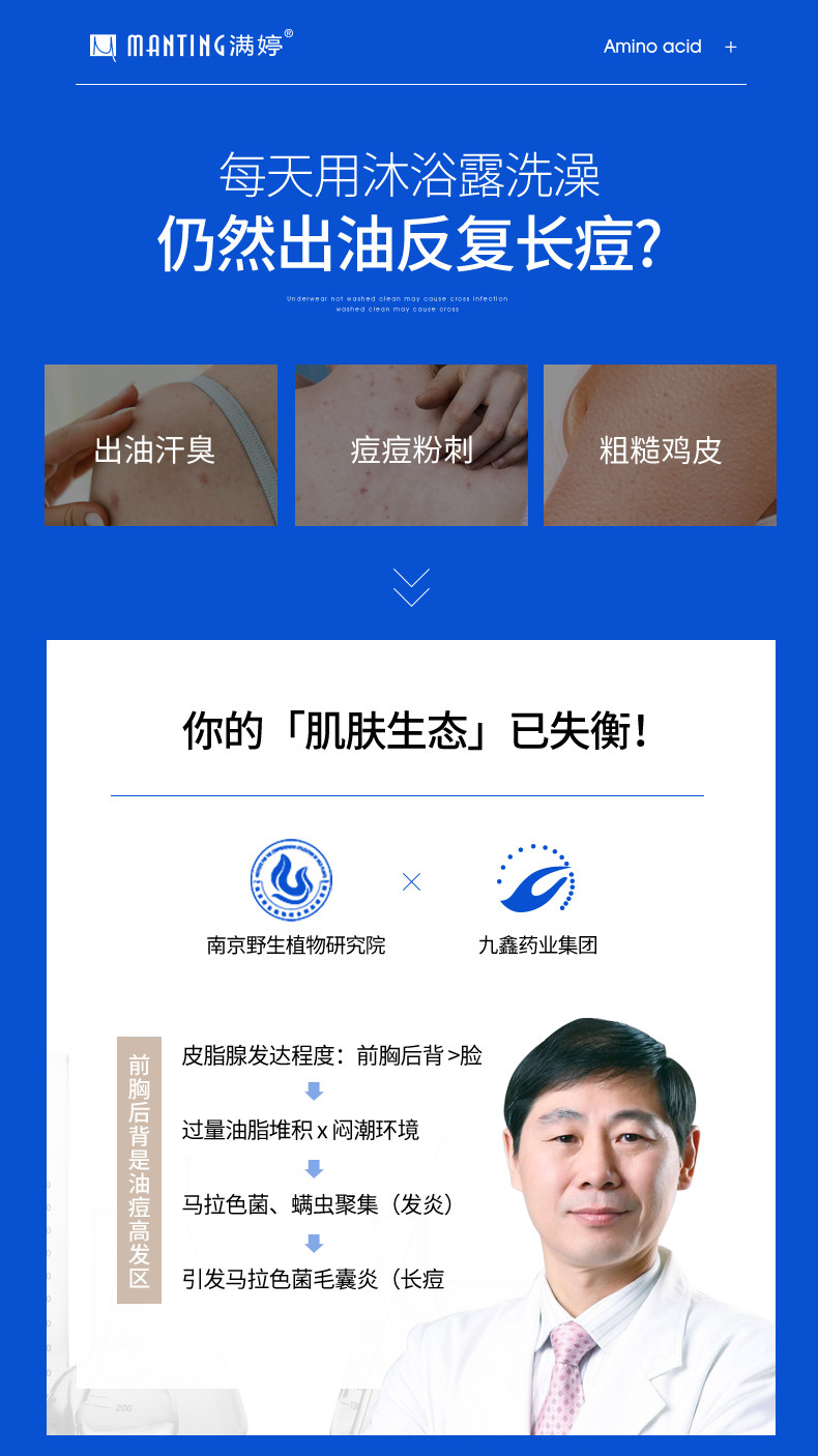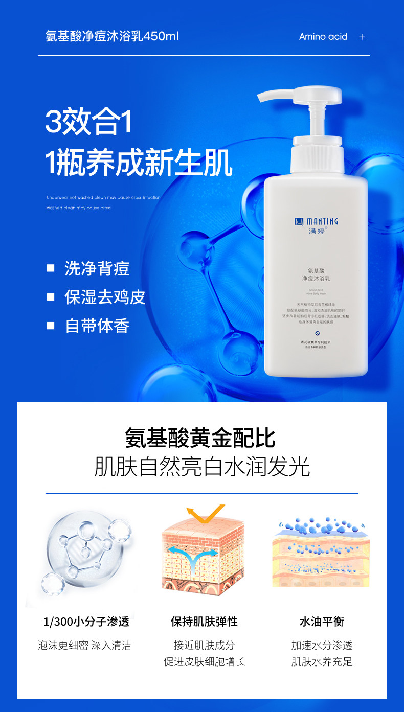 满婷 Гель для душа на основе аминокислот, мужской антибактериальный дезодорант со стойким ароматом, против зуда, долговременный эффект