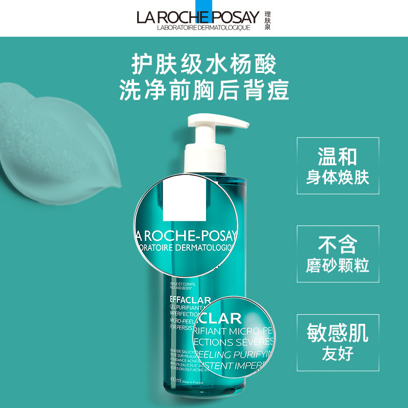 Laroche posay, гель для душа с салициловой кислотой, мягкий гигиенический термометр для всего тела, глубокое очищение, контроль жирного блеска, анти-акне