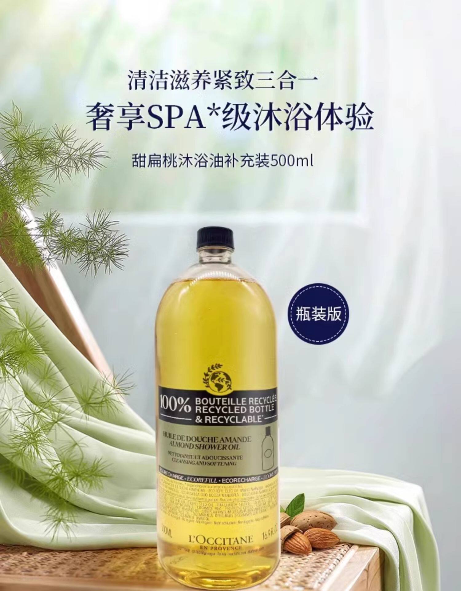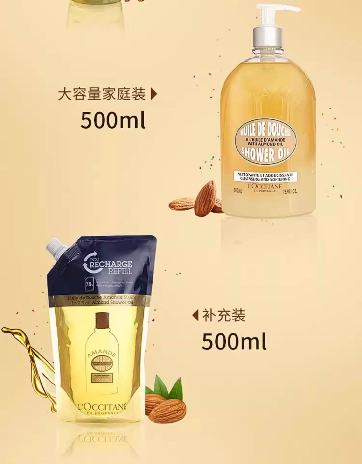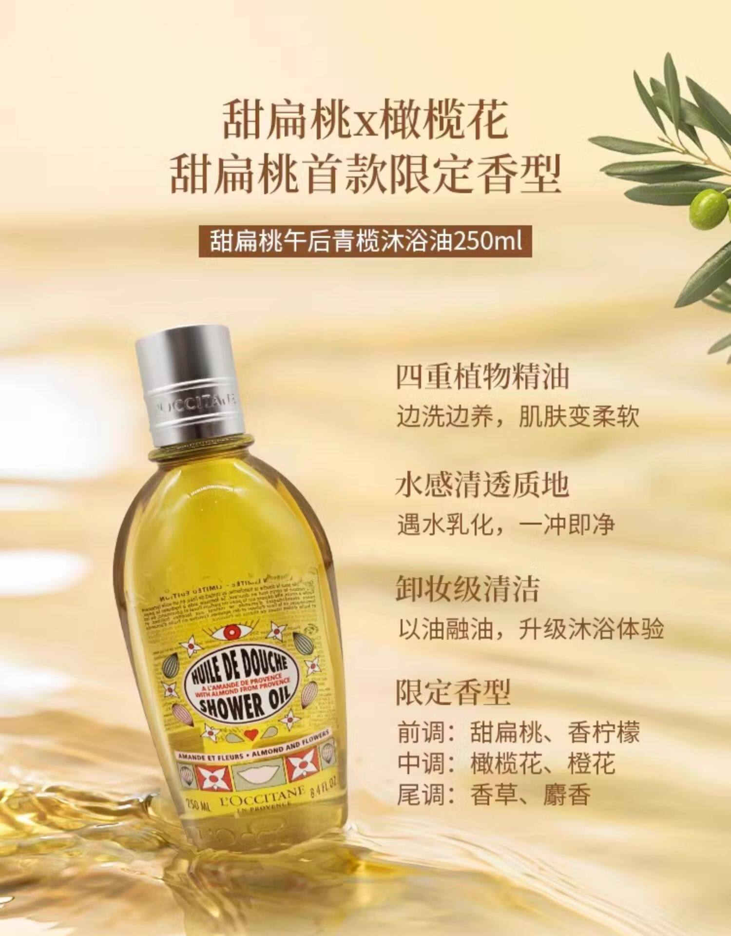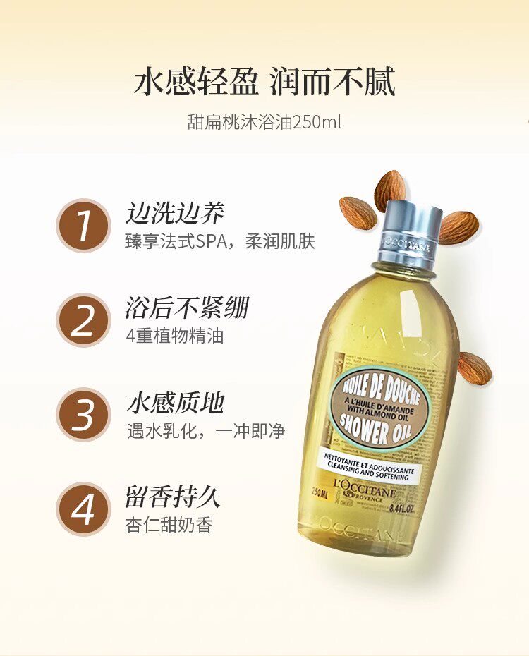 L'occitane, миндальное масло для ванны со сладким миндалем, Франция