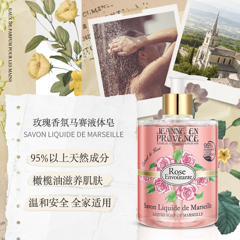 Парфюмированное питательное мыло для тела с розой в составе, гель для душа, Франция, 500 мл