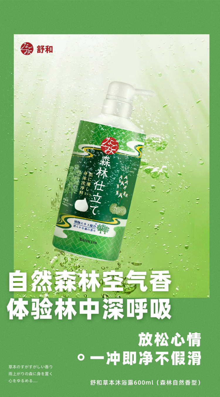 Японский импортный травяной освежающий парфюмированный гель для душа, 600 мл