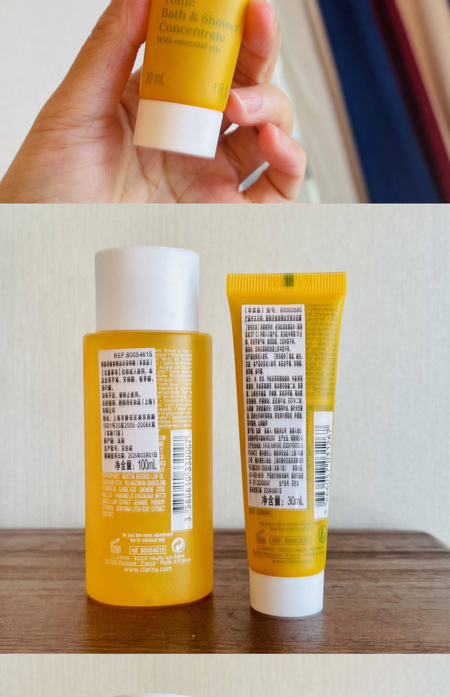 Clarins, масло, питательный гель для душа, защита от солнца, 30 мл, 100 мл, пробник