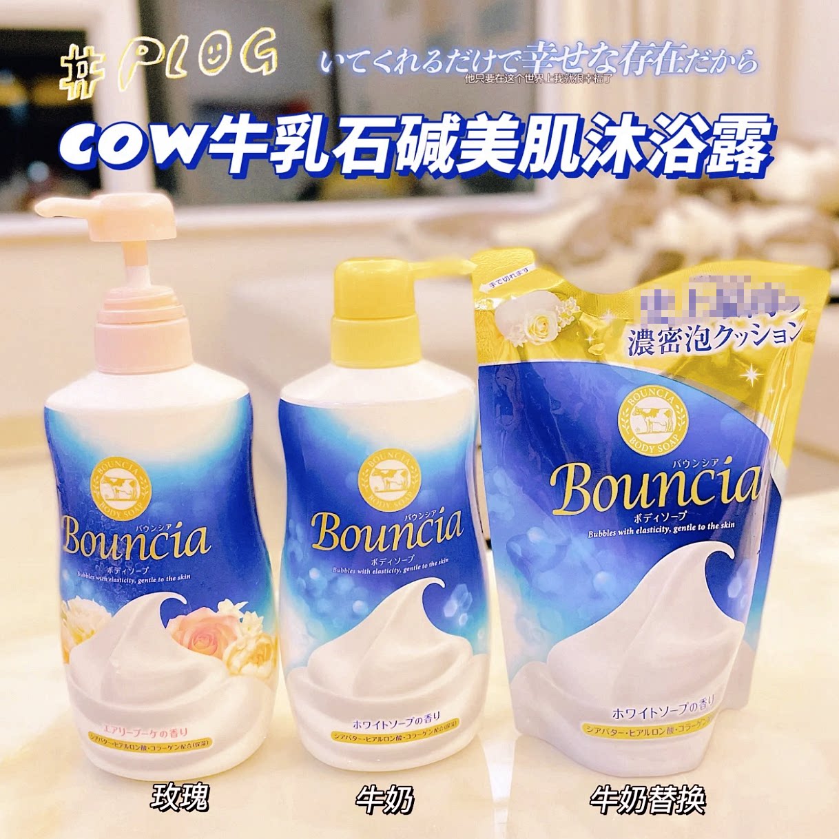 Японский оригинальный цветочный синий розовый золотой гель для душа, (в наличии на складе)