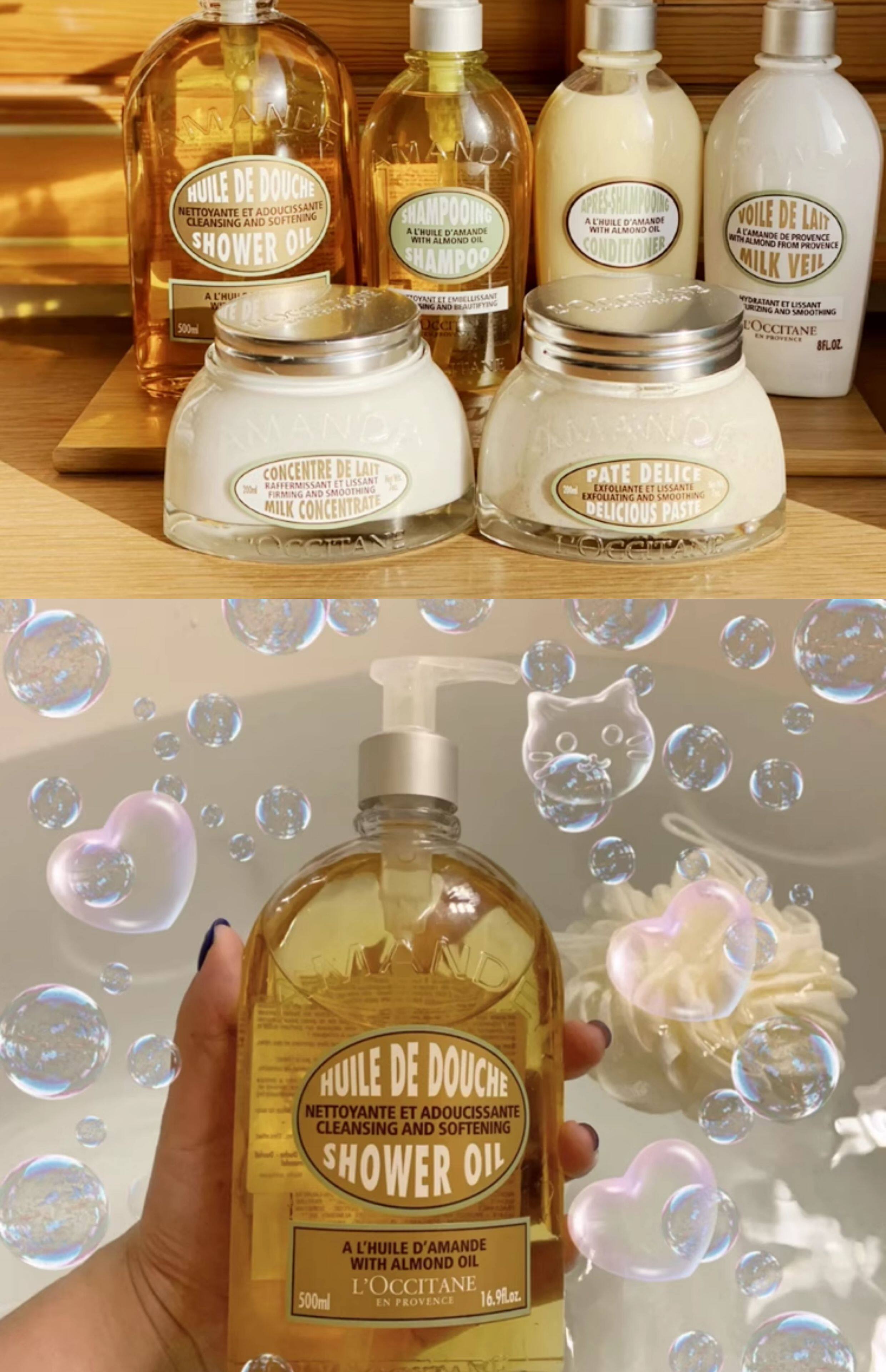 L'occitane, миндальное питательное увлажняющее масло для ванны со сладким миндалем, (в наличии на складе), Франция, 500 мл