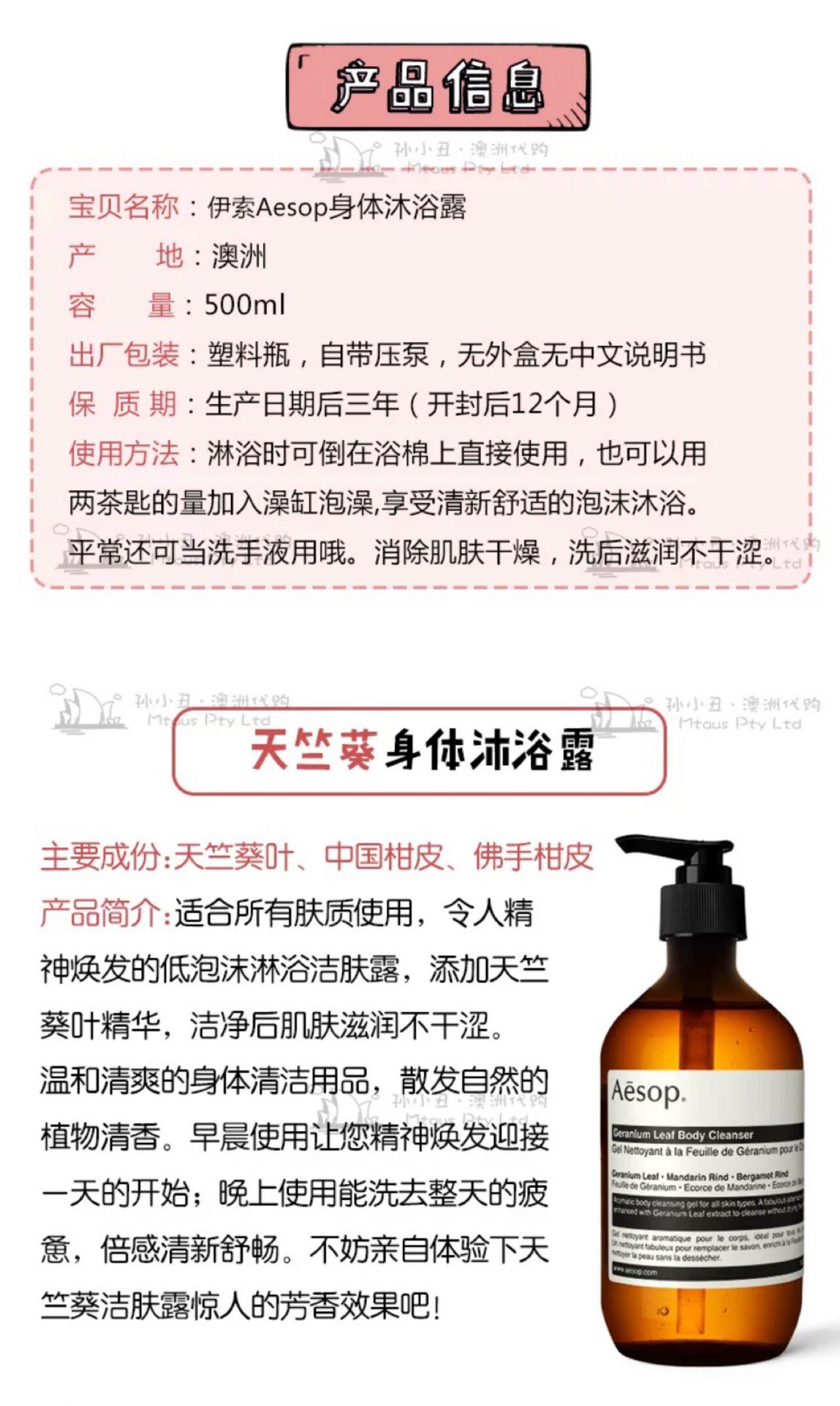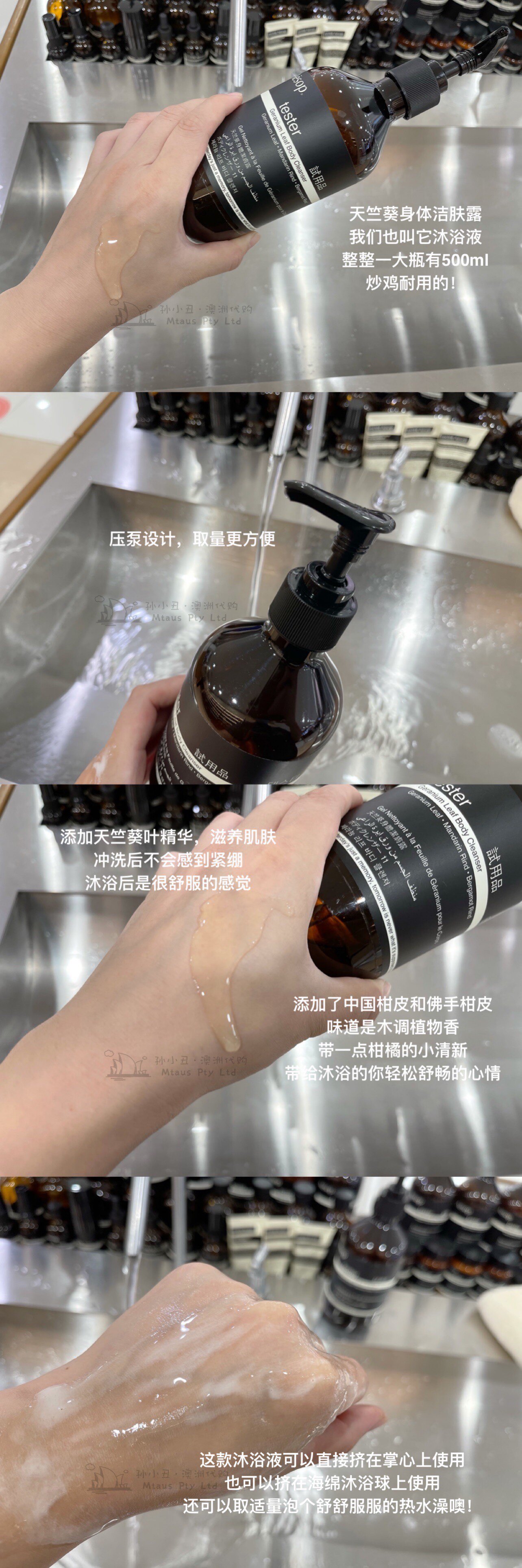 Aesop, успокаивающий увлажняющий свежий гель для душа с геранью для всего тела, (в наличии на складе), глубокое очищение, 500 мл