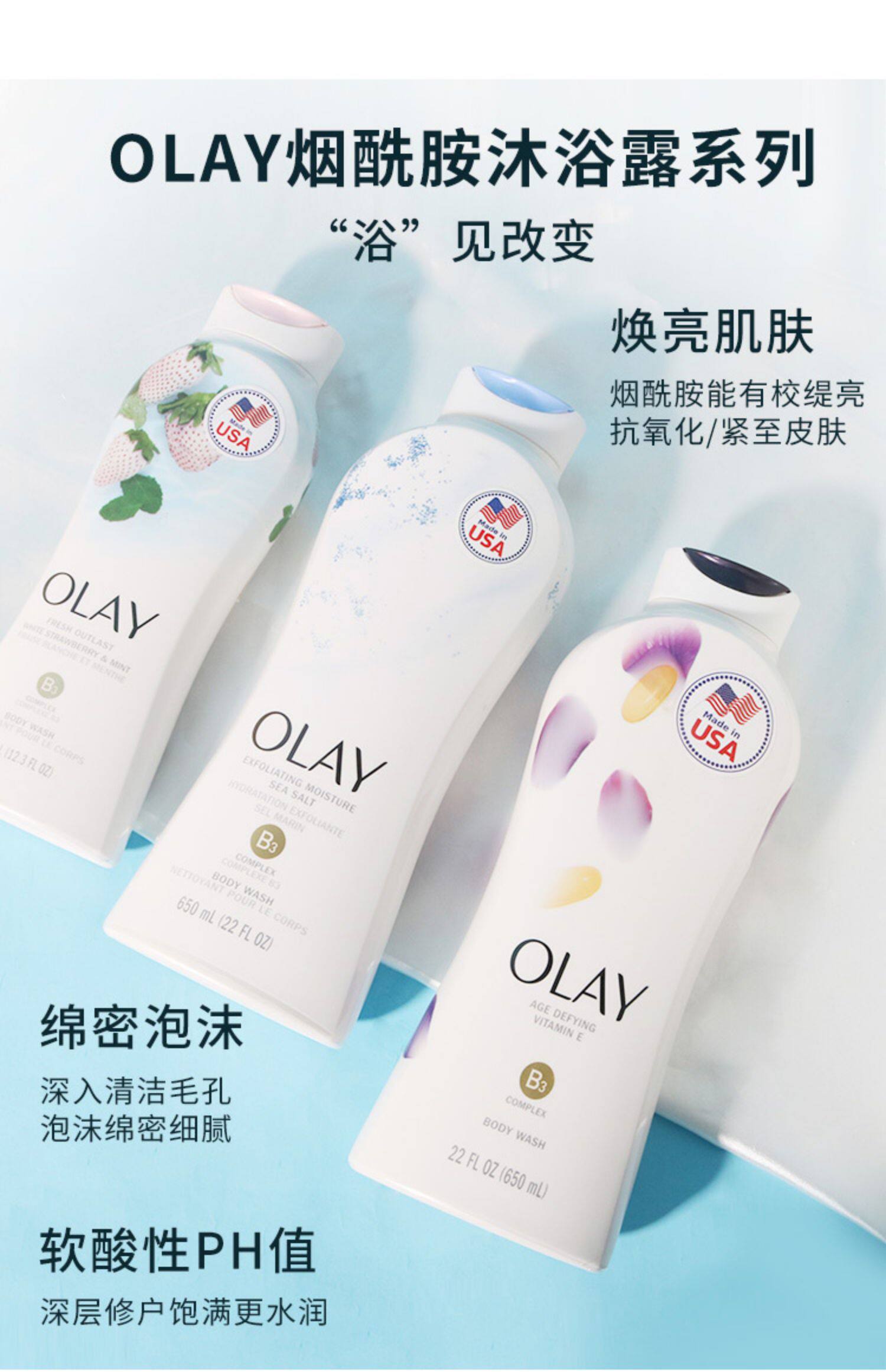 Olay, мятный гель для душа, осветляющая увлажняющая питательная морская соль содержит никотиновую кислоту, американская версия, 650 мл