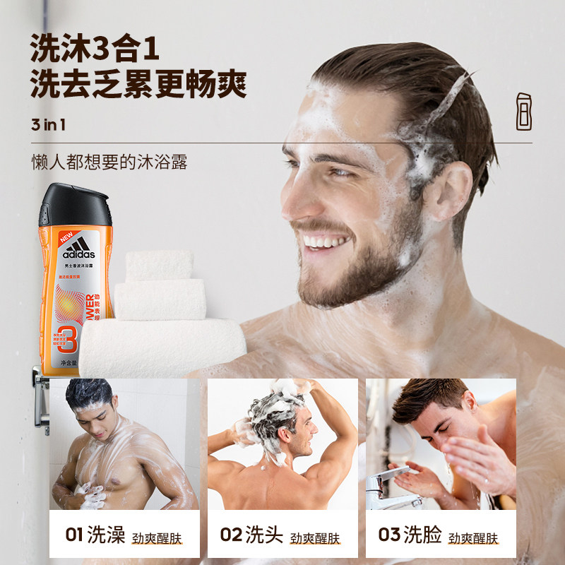 Adidas/阿迪达斯 Мужской гель для душа со стойким ароматом, комплект, долговременный эффект, «три в одном», 250 мл