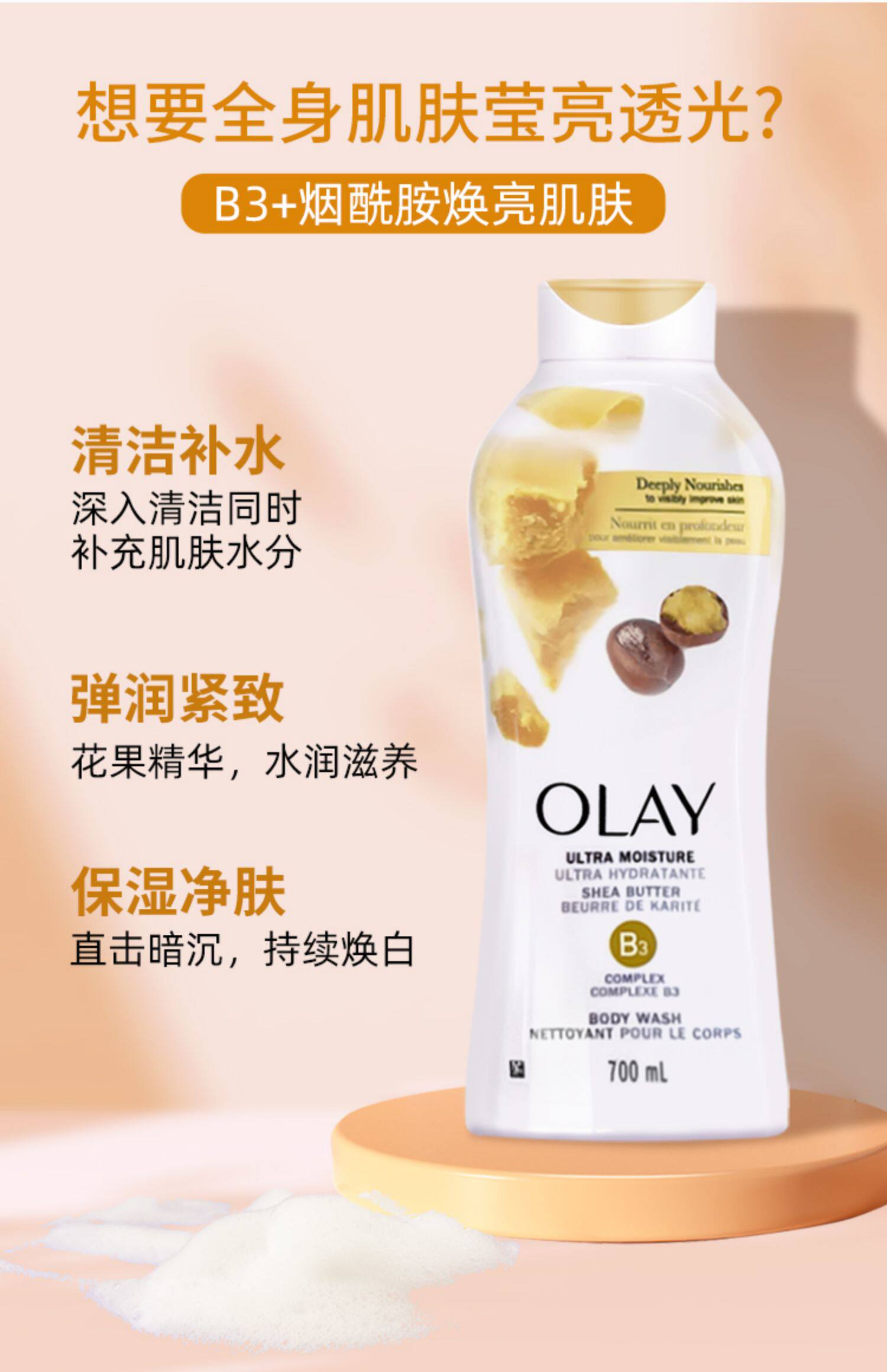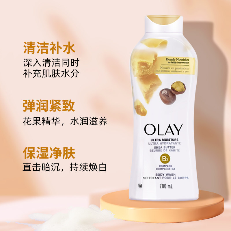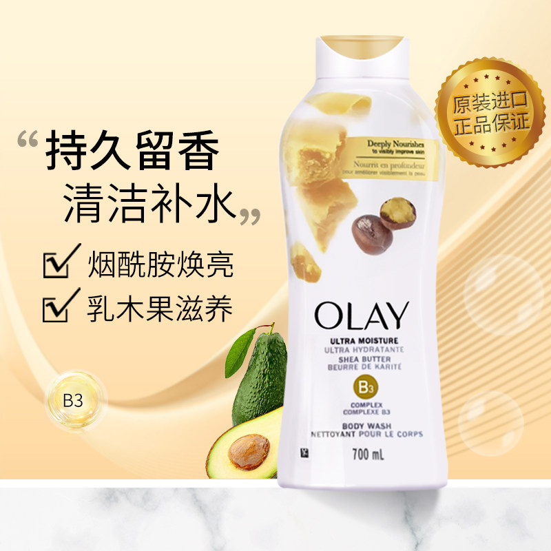 Olay, осветляющий увлажняющий гель для душа содержит никотиновую кислоту со стойким ароматом, долговременный эффект, 700 мл
