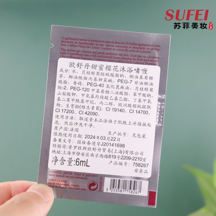 L'occitane, сладкий цветочный парфюмированный питательный гель для душа для профессионального использования, крем для тела, 10 штук, пробник, 6 мл