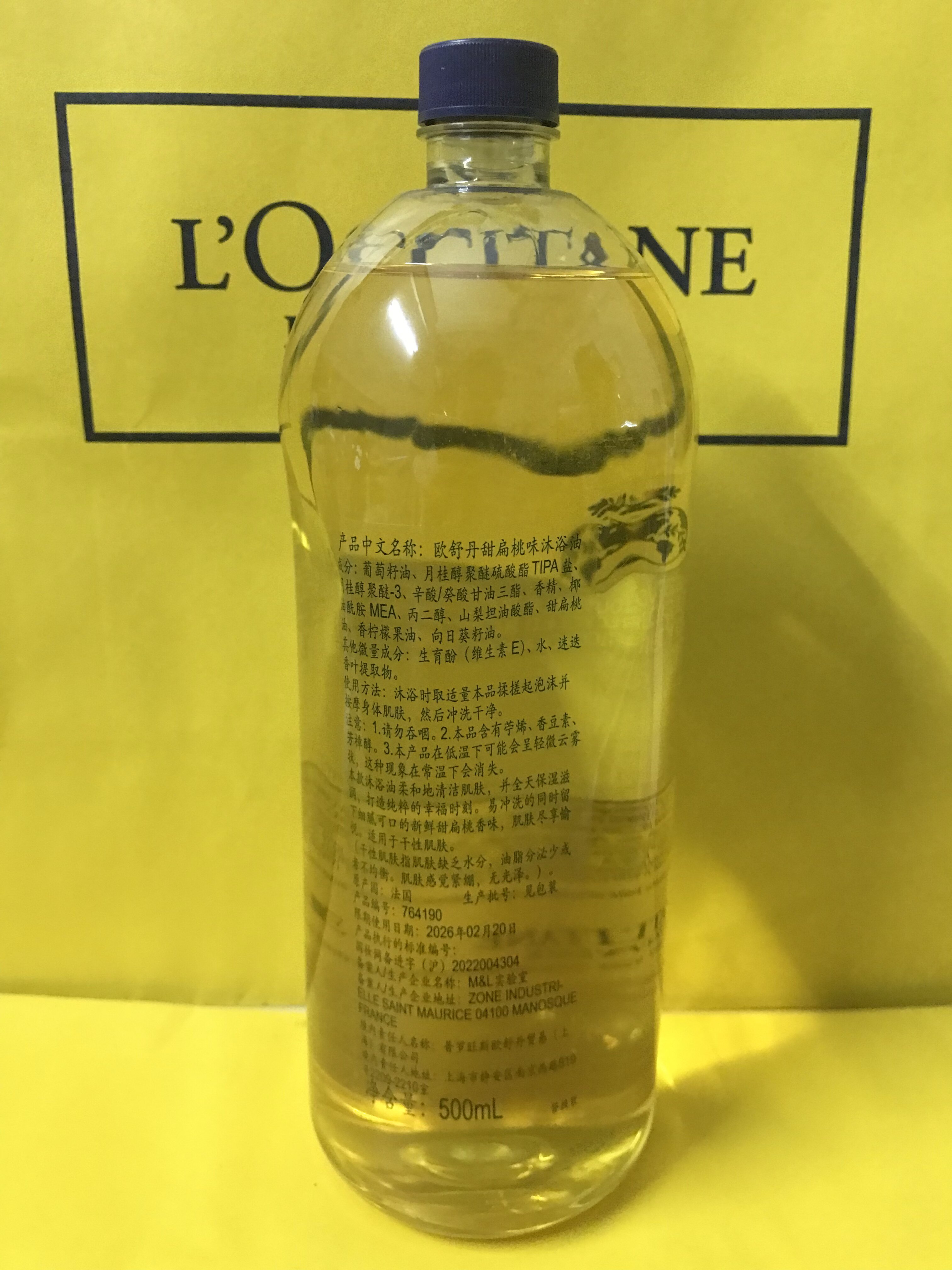 L'occitane, сменное масло для ванны со сладким миндалем, упаковка, Франция, 500 мл, новая упаковка, 27 года