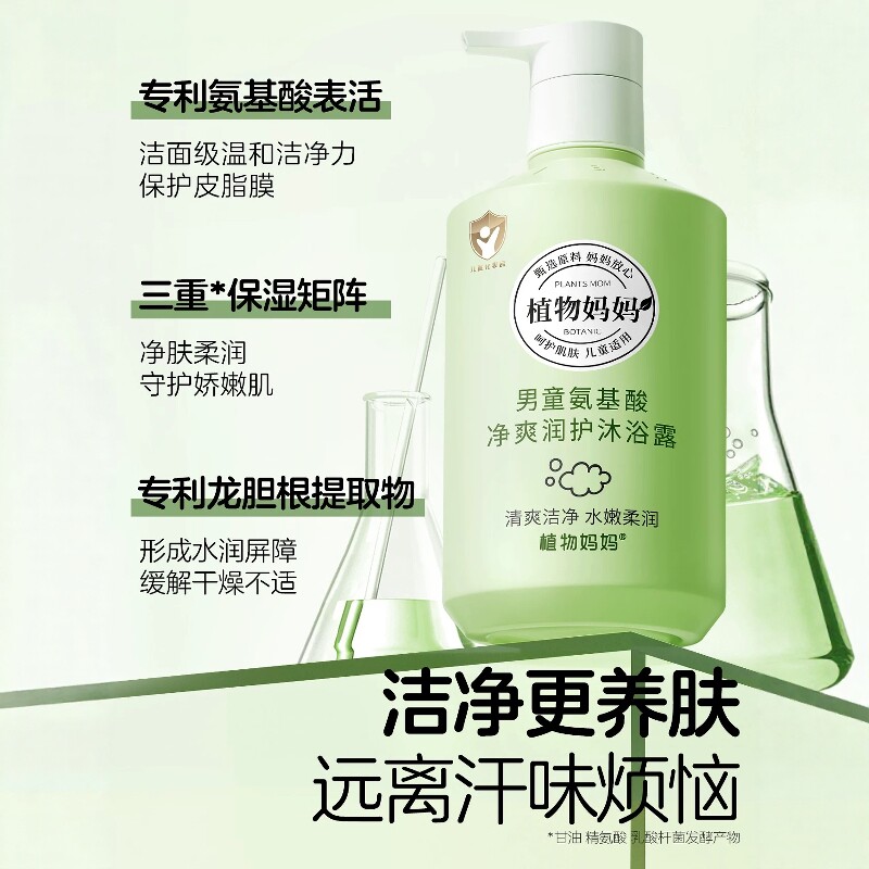 Растение Мама. Увлажняющий очищающий гель для душа с аминокислотами для мальчиков 250 мл