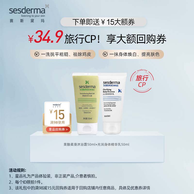 【Путешествие CP】 Sesderma Pure Кето кислотный гель для душа + гладкий лосьон для тела 50 мл грубая кожа официально