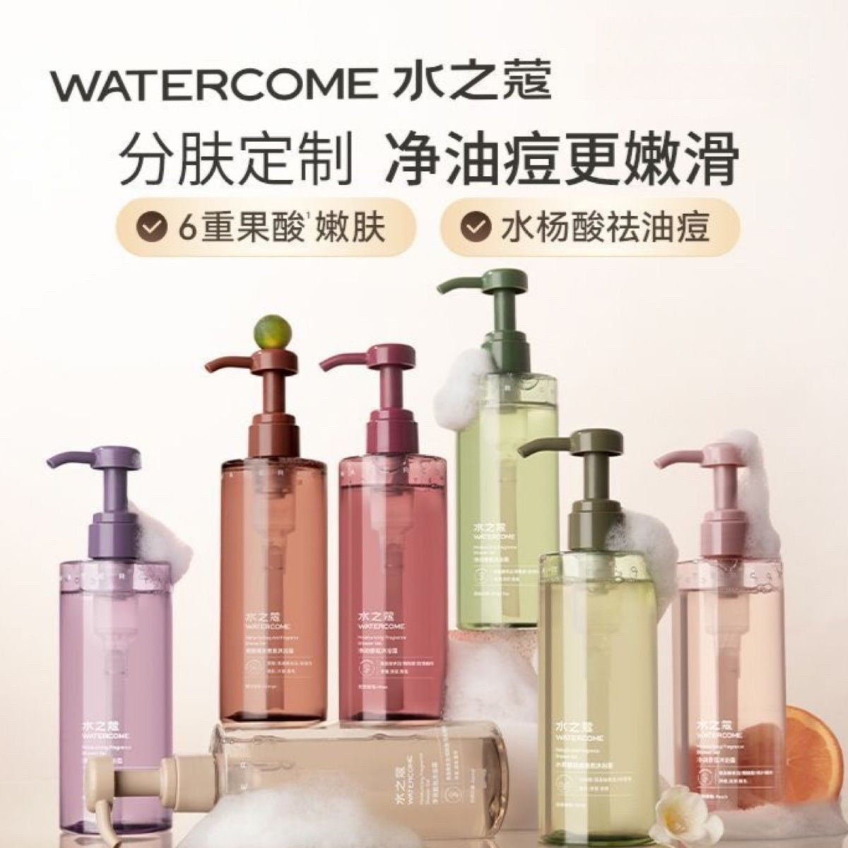 Парфюмированный гель для душа, увлажняющая фруктовая кислота на основе аминокислот с салициловой кислотой, увлажняющий гидролат, анти-акне