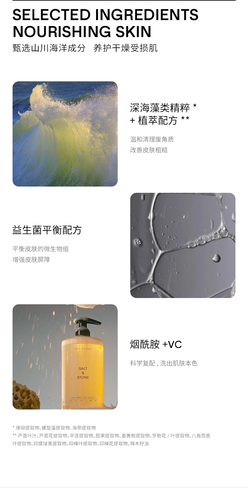 Salt&Stone Парфюмированный деревянный вместительный и большой гель для душа из сандалового дерева со стойким ароматом, долговременный эффект