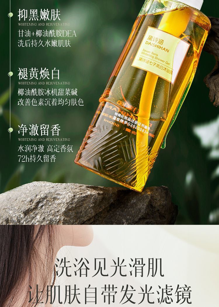 Осветляющий черно-желтый восстанавливающий гель для душа содержит никотиновую кислоту для всего тела от тусклости кожи со стойким ароматом, долговременный эффект