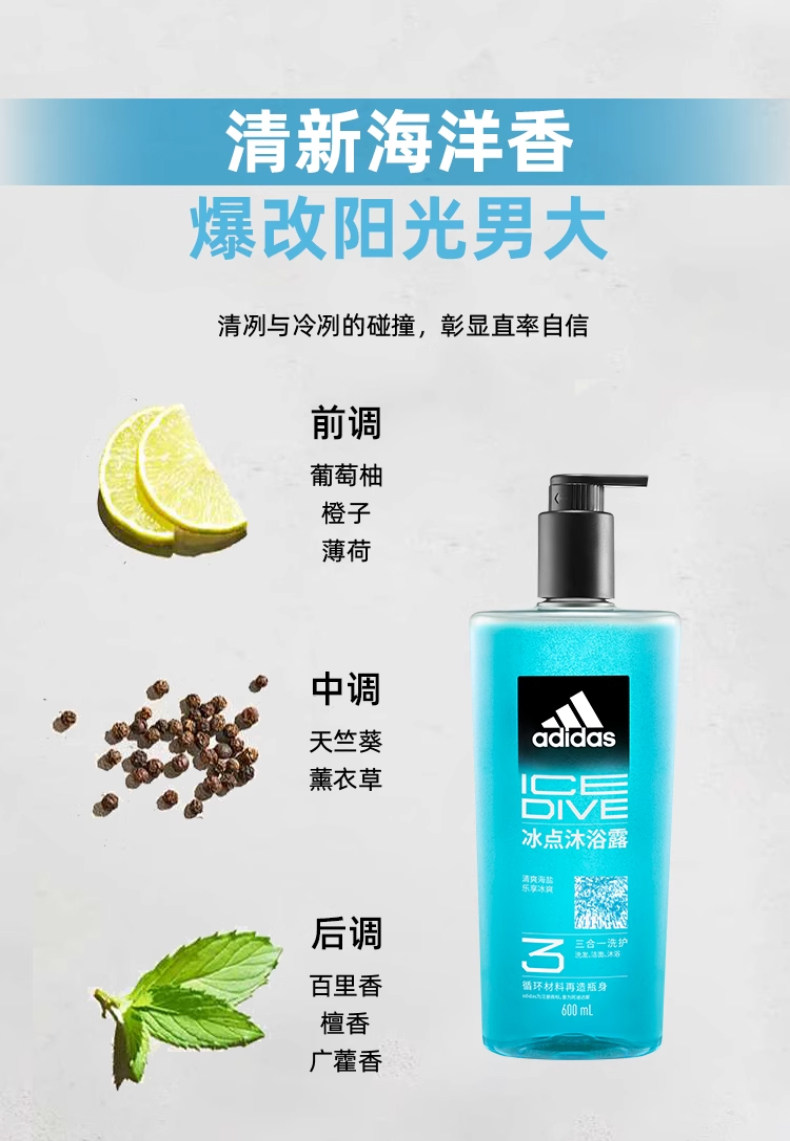 Adidas, гель для душа, «три в одном»