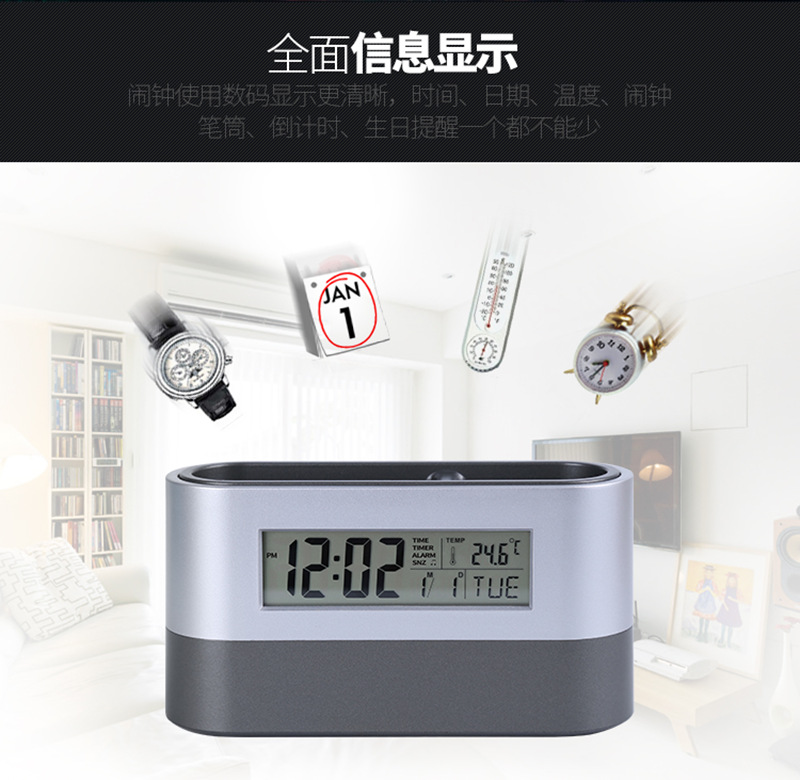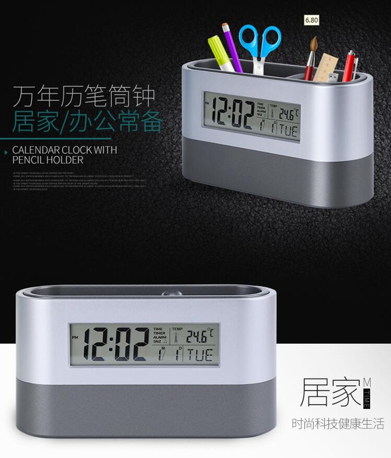 Универсальный электронный держатель для ручек, креативный календарь, электронные часы, термометр для офиса, подарок на день рождения, делается под заказ, с печатью вашего логотипа