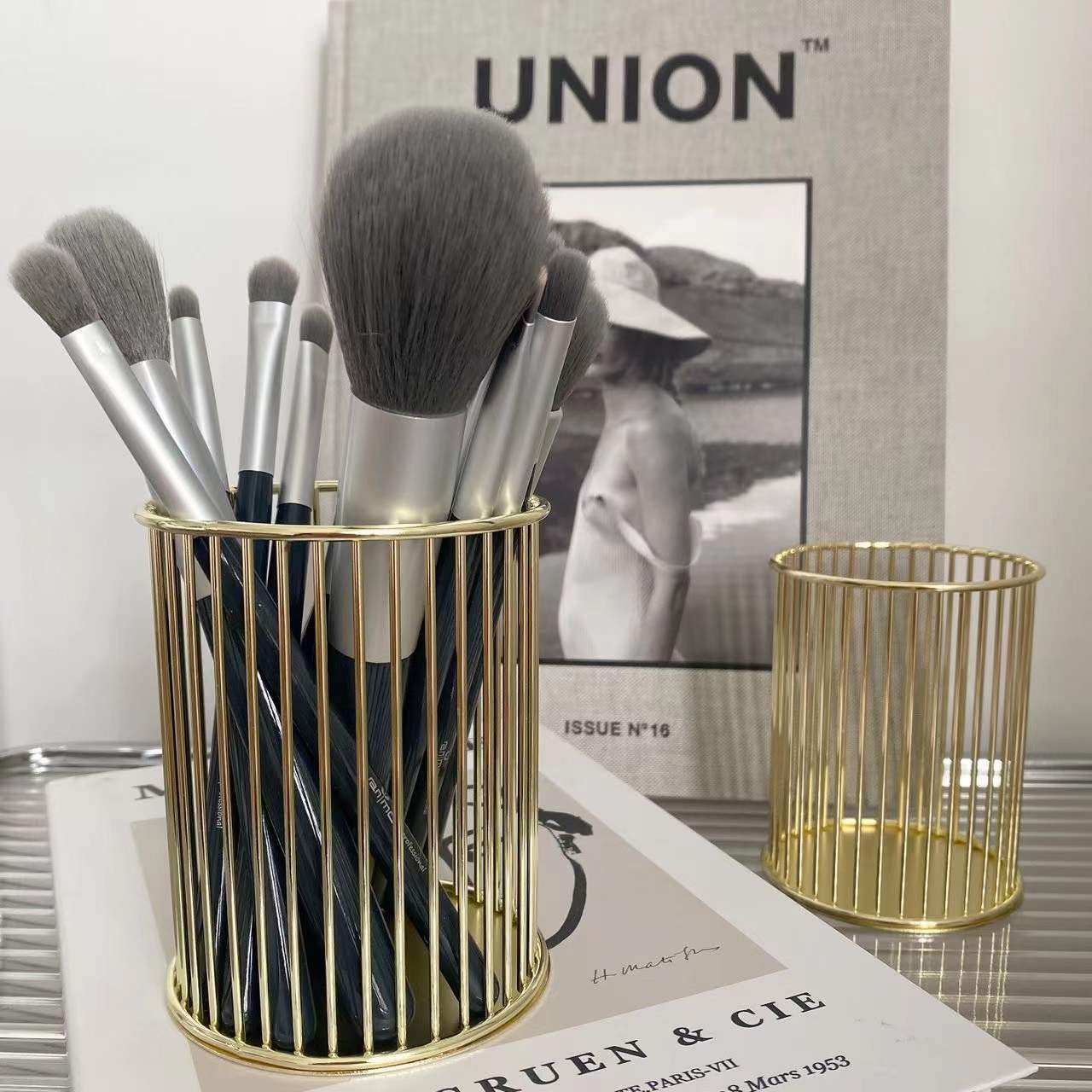 Золотая кисть, настольная система хранения для школьников, металлический держатель для ручек, изысканный стиль