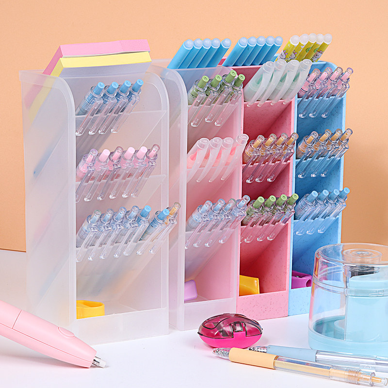 Пенбал -трубка наклонная вставка Ins Simple Nordic Личная прозрачная коробка для хранения канцелярских товаров, вырубленная пятью плавниками с креативной модой милой полки, женщина, маленькая свежая цветная, многопрофильная настольная настольная вставка настольная вставка