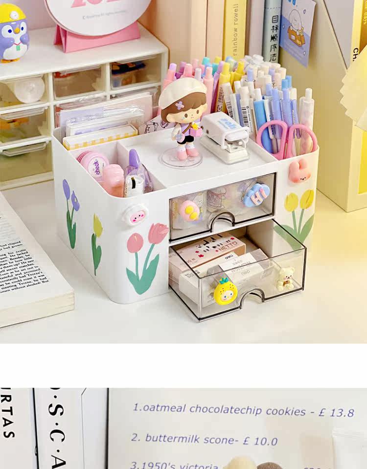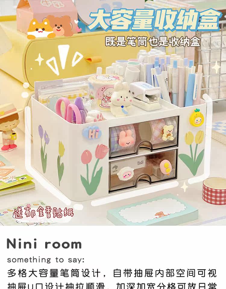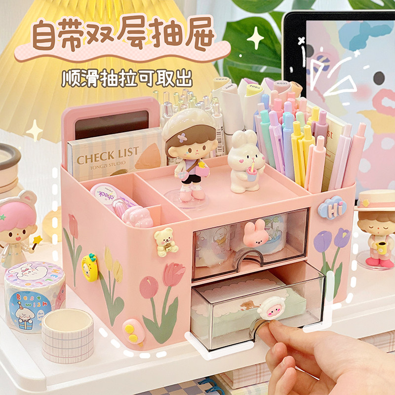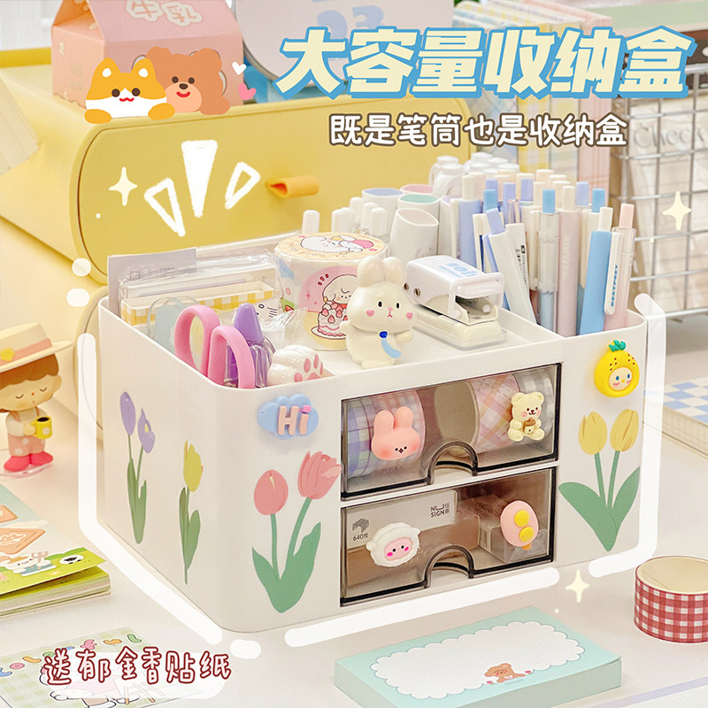 Японский держатель для ручек для ящиков, милая коробка для хранения для школьников, канцтовары, в цветочек
