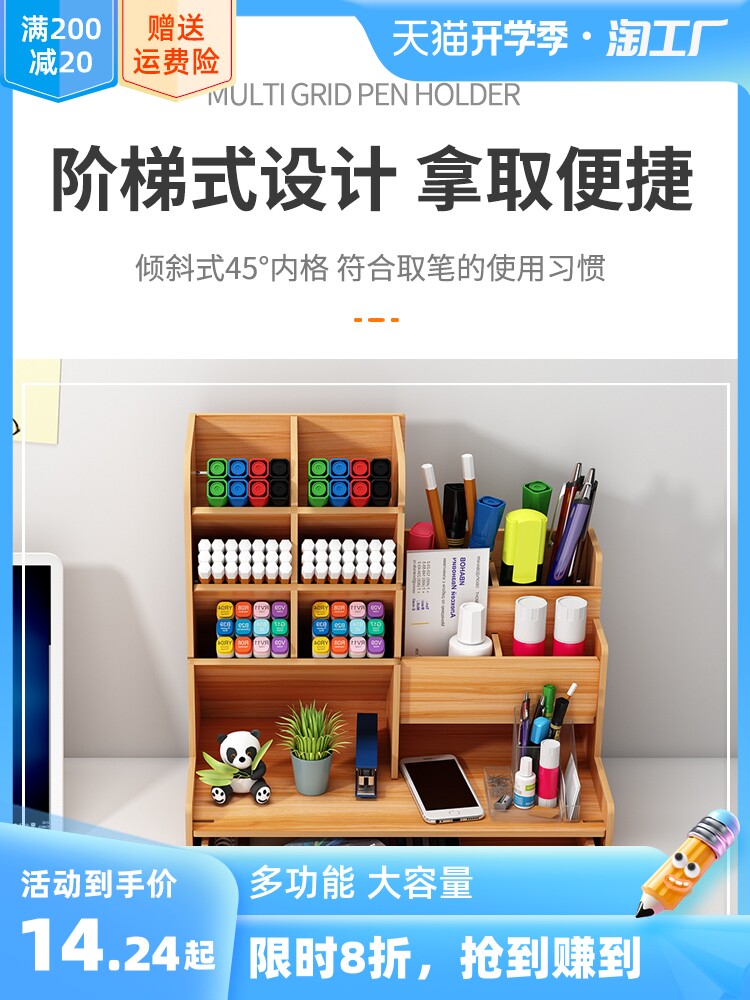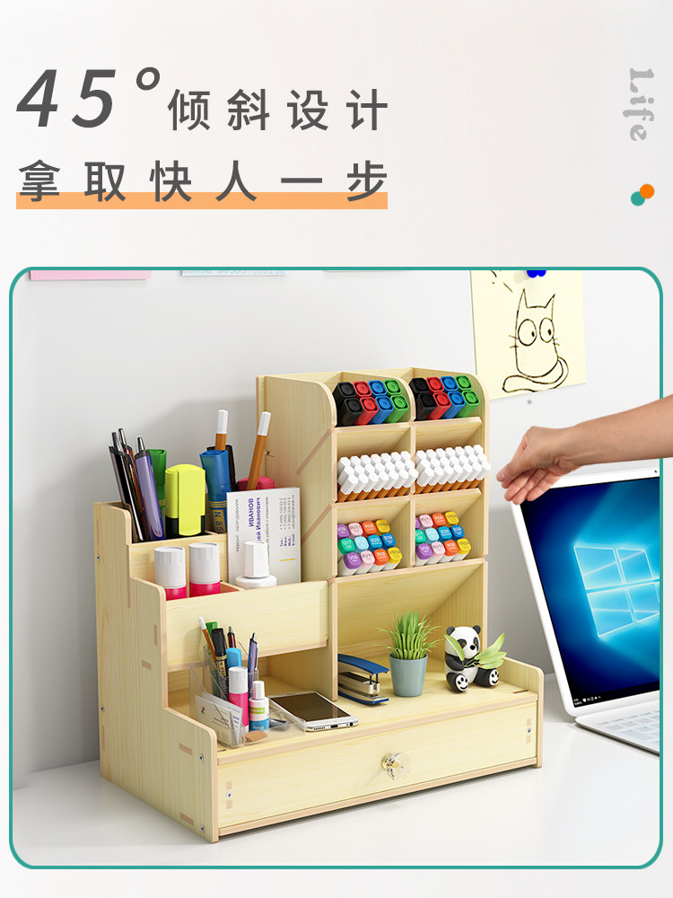 Держатель для ручек, коробка для хранения, деревянные универсальные канцтовары для ящиков для школьников, модная детская милая ручка-роллер, свежие цветные карандаши