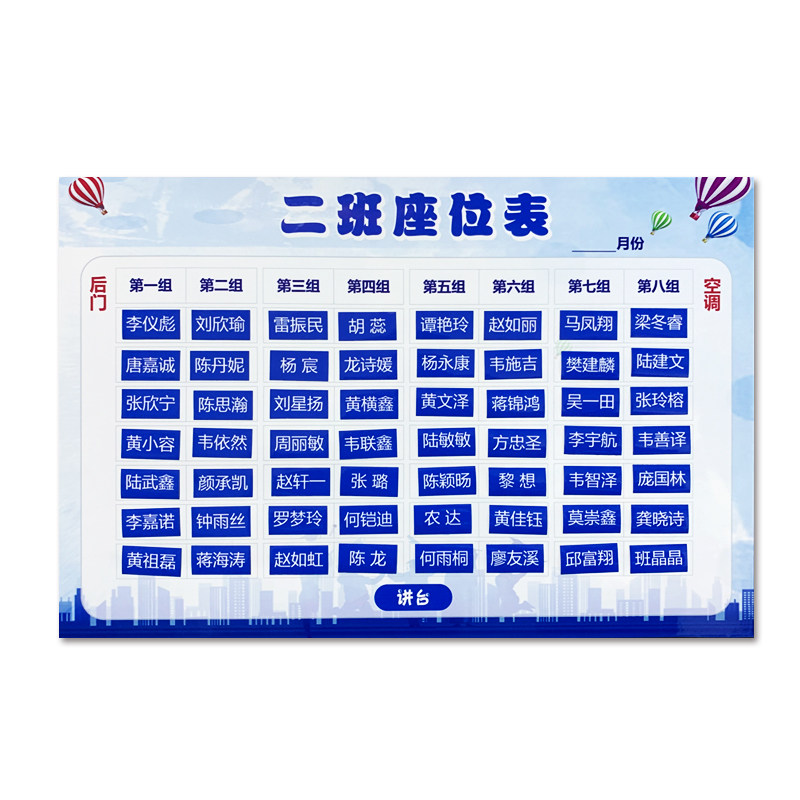 Магнитная схема рассадки мест. Съемное занятие по классу. Фамилия ученика. Наклейка D. Расположение мест на подиуме в классе. Магнитный план.