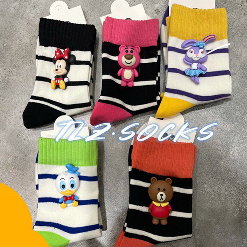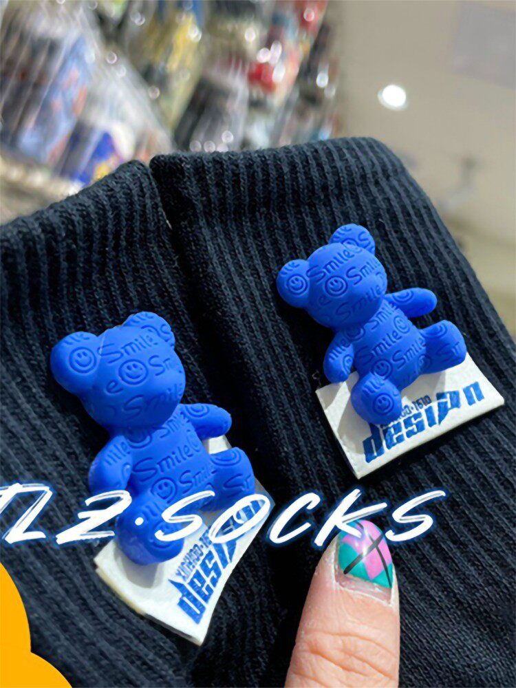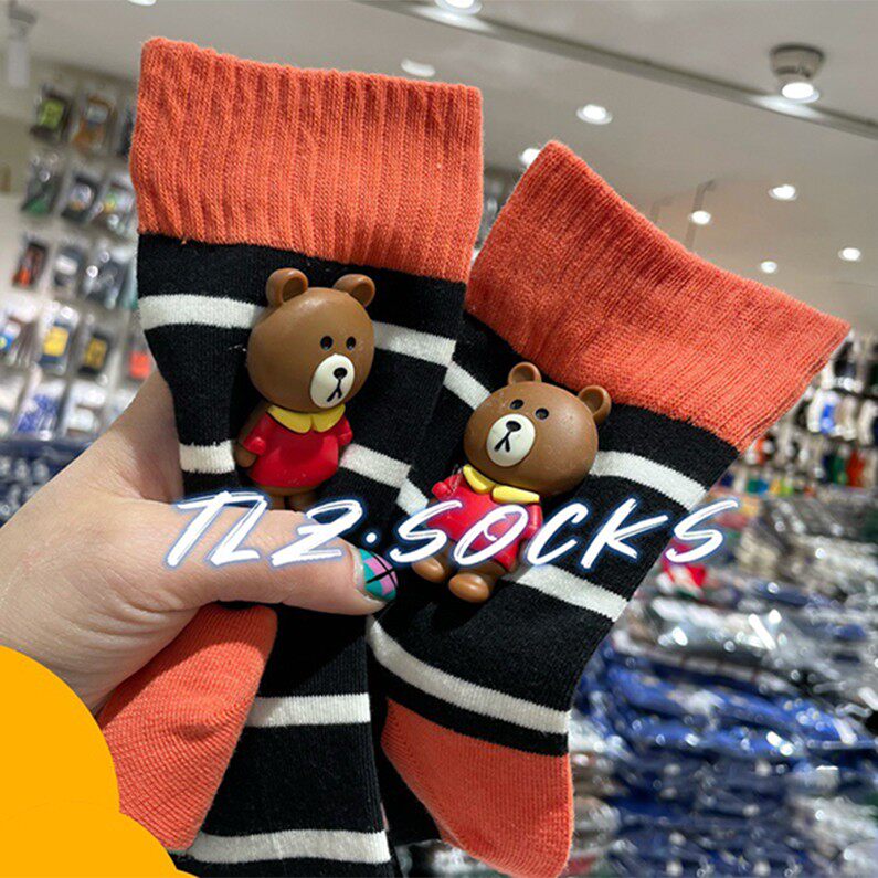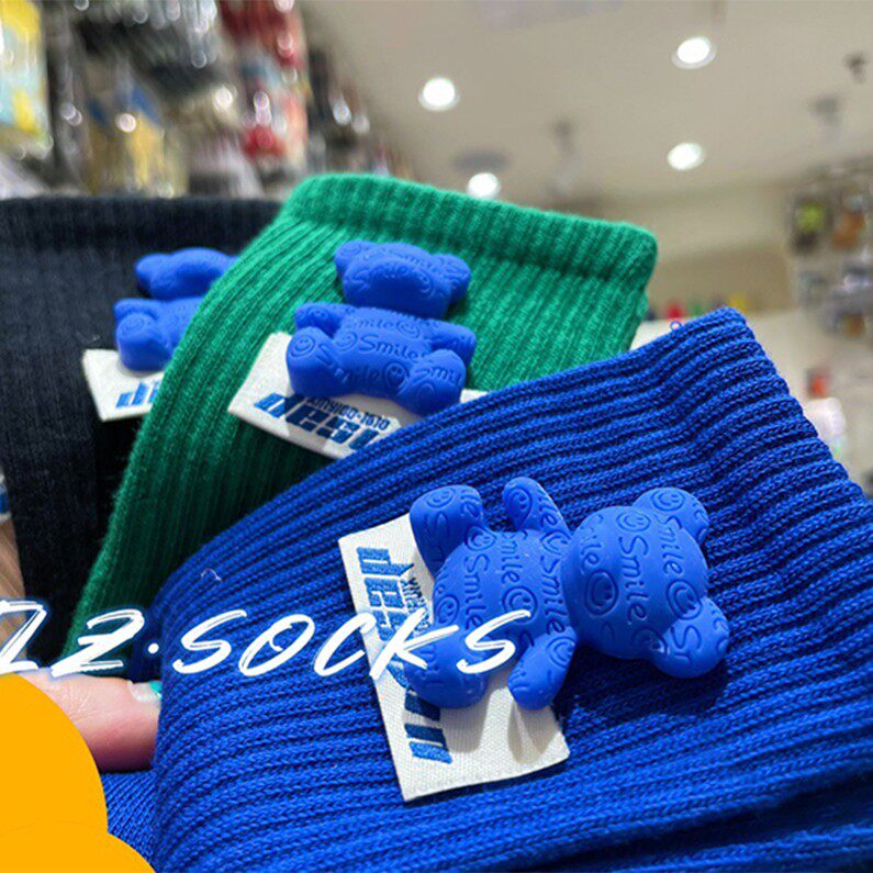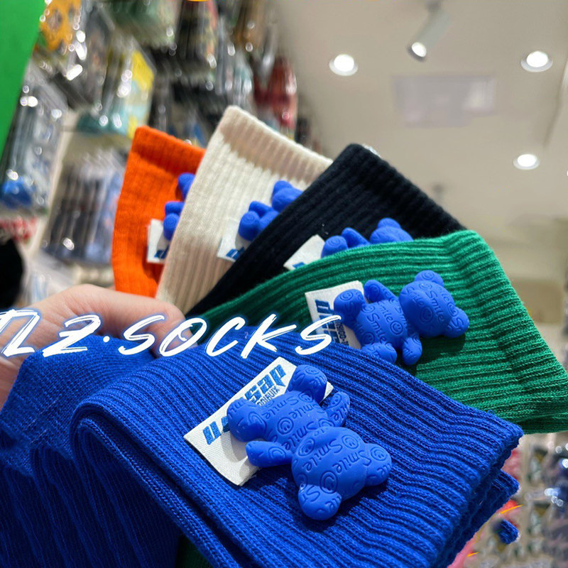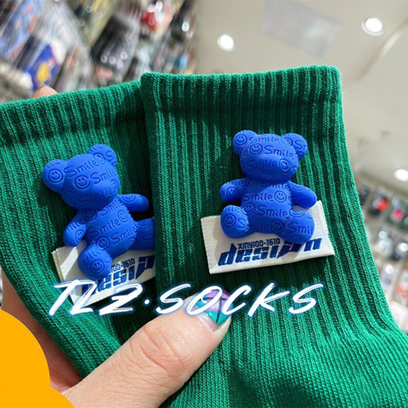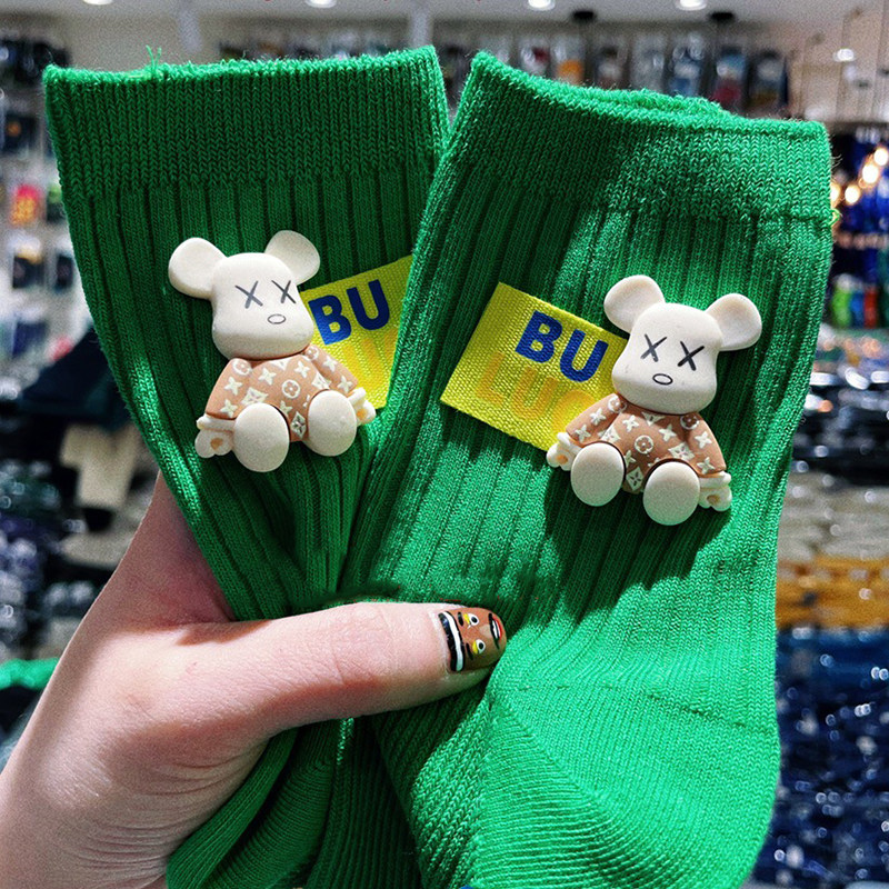 Tide, осенние носки, зеленые хлопковые гольфы, с медвежатами, популярно в интернете, средней длины