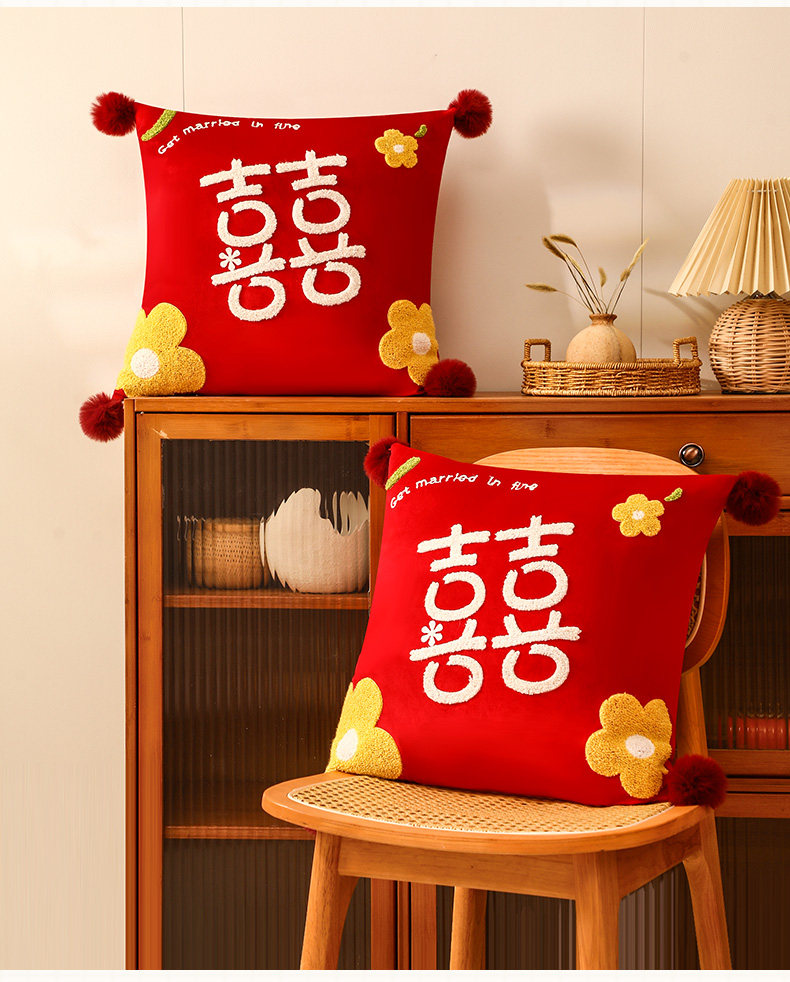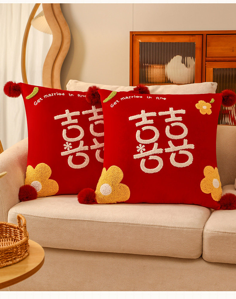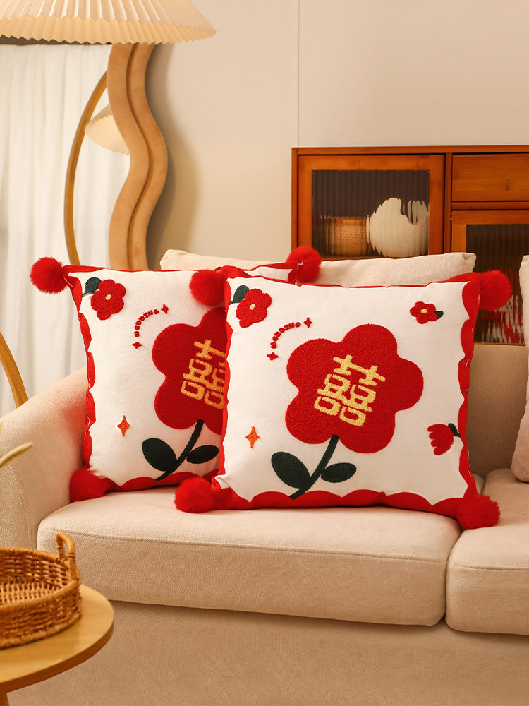 Свадебная подушка Xi Zi Пара свадебных комнат, чтобы организовать новую свадебную кровать, красная двойная счастливая подушка свадебные принадлежности