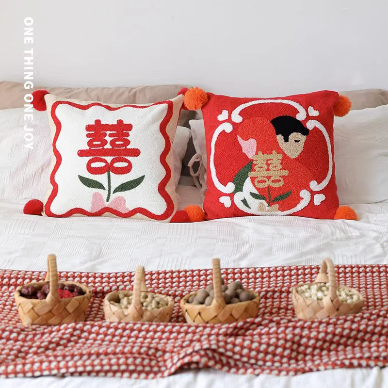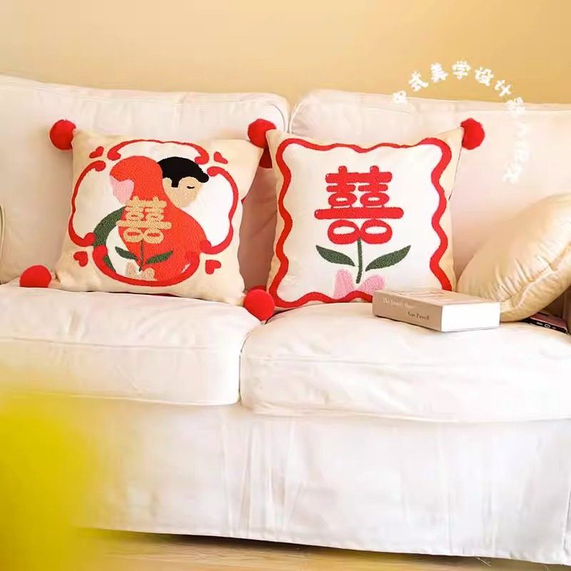 Плюшевая подушка, красный диван для спальни, с вышивкой