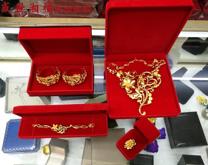 Золотое ювелирное украшение, комплект, коробка, красная коробочка для хранения