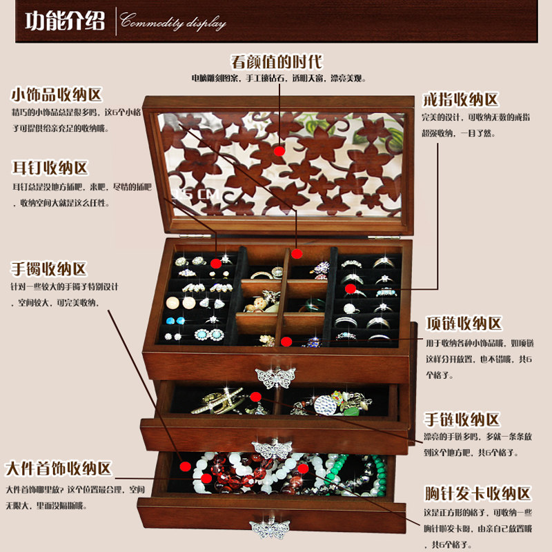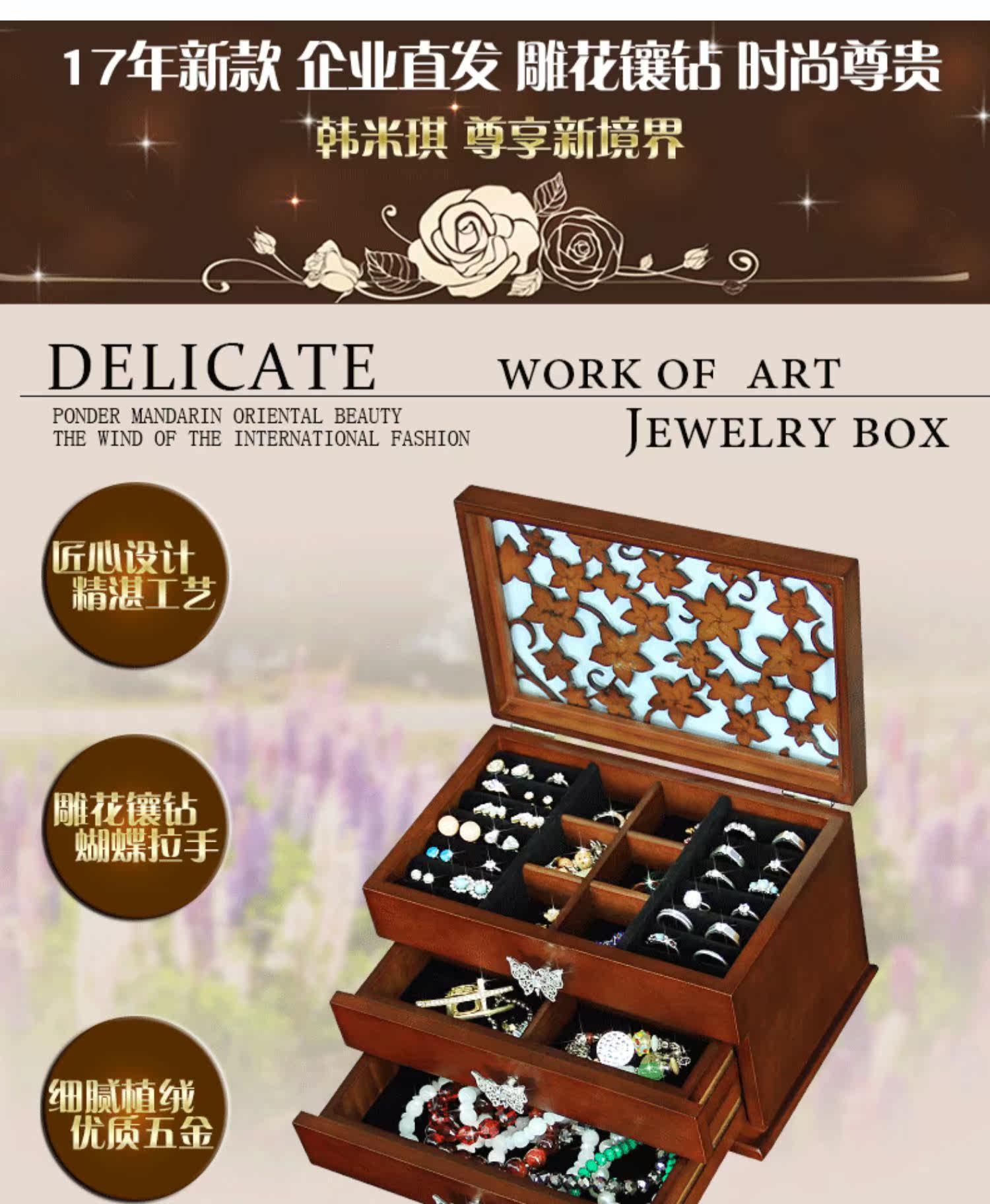 Коробочка для хранения, коробка для хранения, ювелирное украшение, аксессуар, кольцо, ожерелье, деревянная цепочка для принцессы, европейский стиль