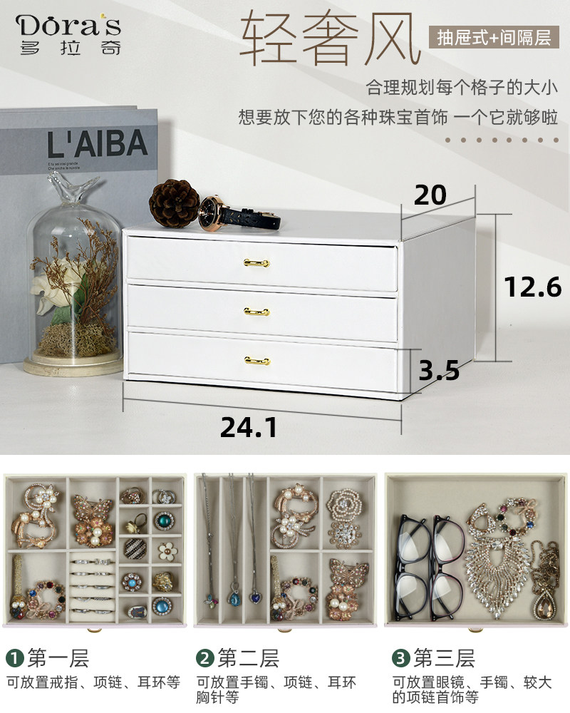 多拉奇 Вместительная и большая коробочка для хранения, высококлассное ожерелье, серьги, браслет, аксессуар, ювелирное украшение, коробка для хранения