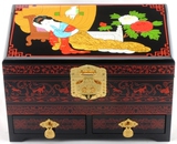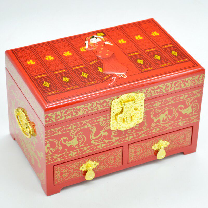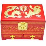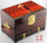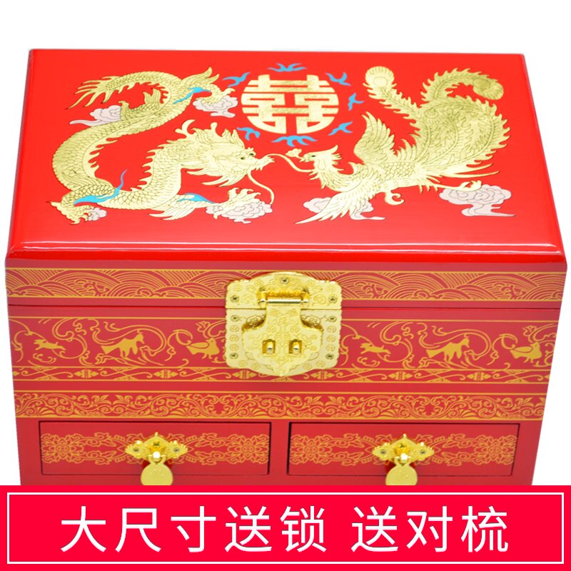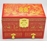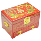 Красная коробочка для хранения, деревянная ретро коробка для косметики, дракон и феникс, китайский стиль