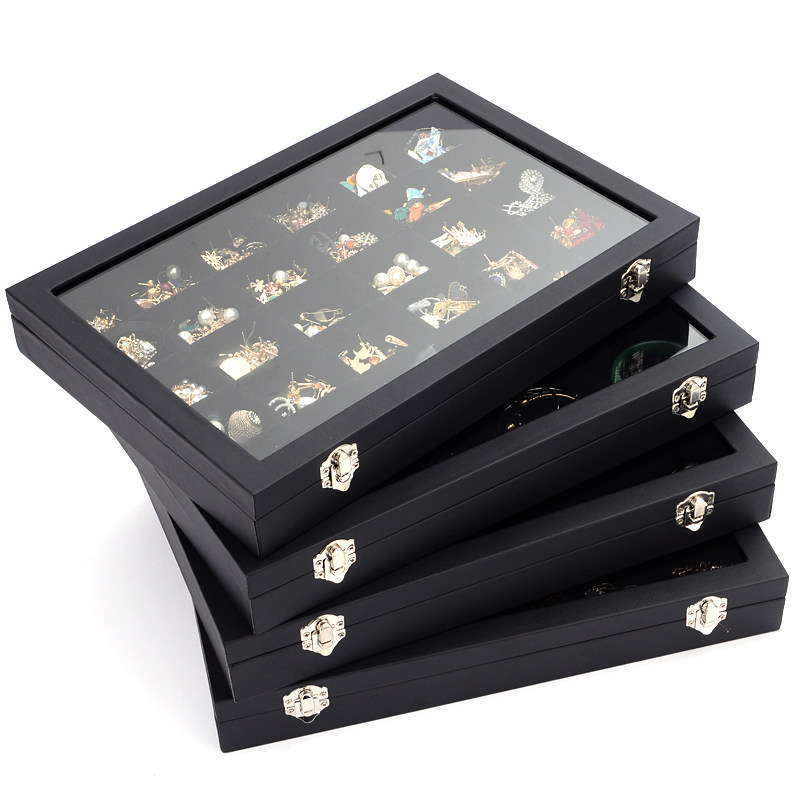 Черное ювелирное украшение, ожерелье, кольцо, серьги, браслет из грецкого ореха, система хранения, стеклянный стенд
