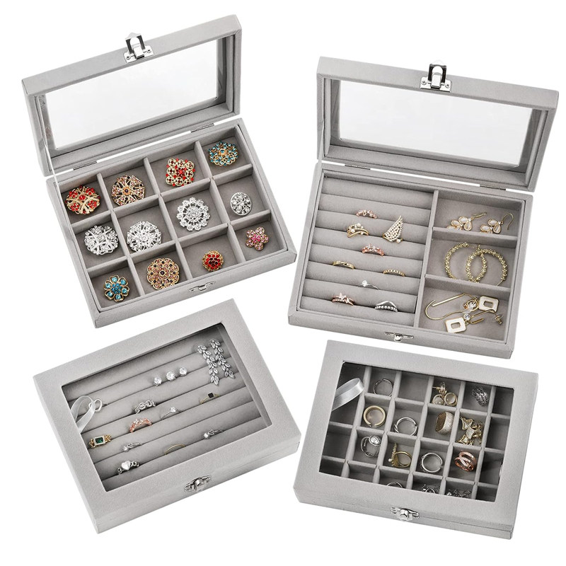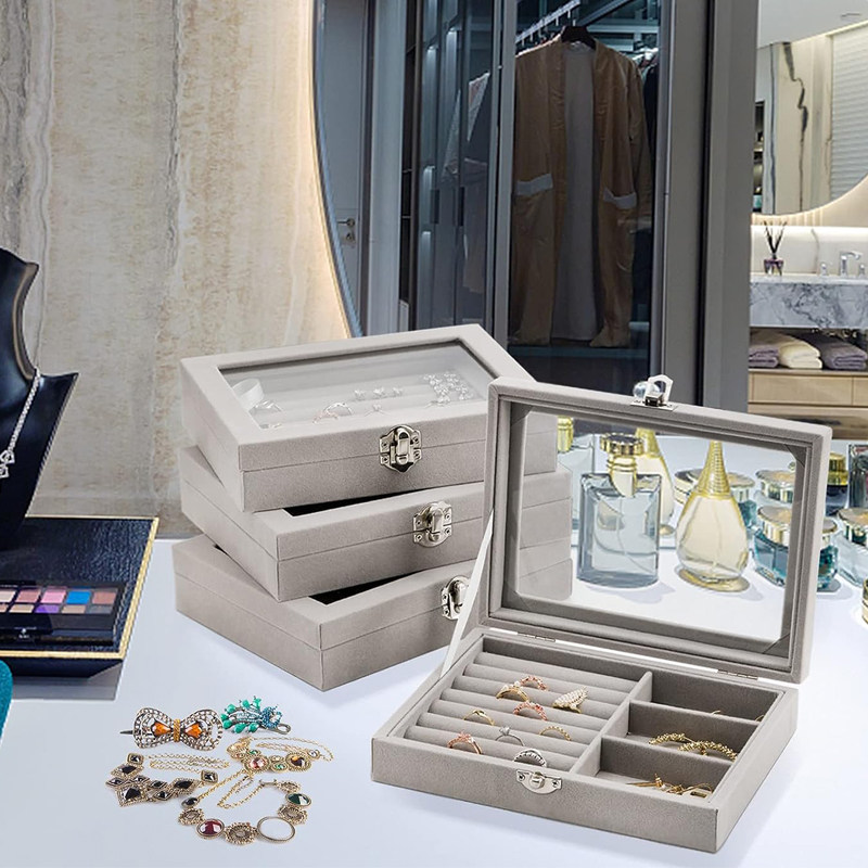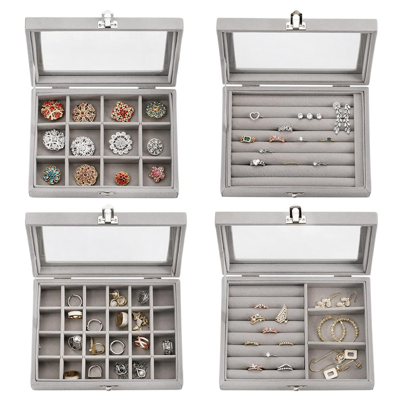 Прозрачная стеклянная маленькая коробочка для хранения, коробка для хранения, серьги, кольцо, аксессуар