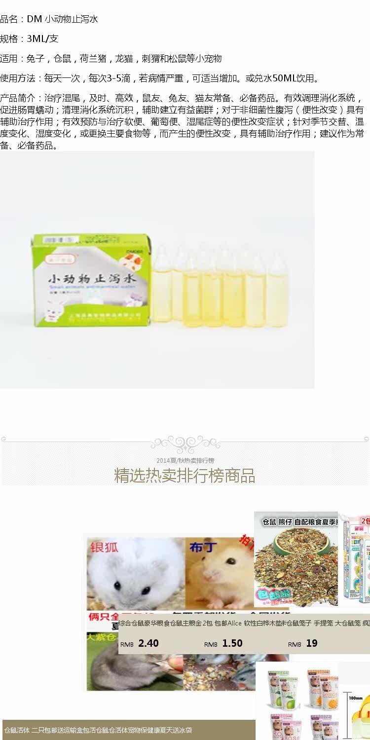 Обработка мелких домашних животных, разбавленная диарея, диарея, мягкий стул, влажный хвостовой хомяк, кролик и кролик общая медицина 1 3 мл