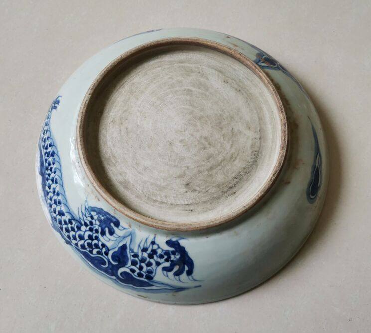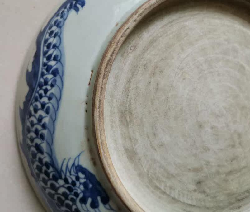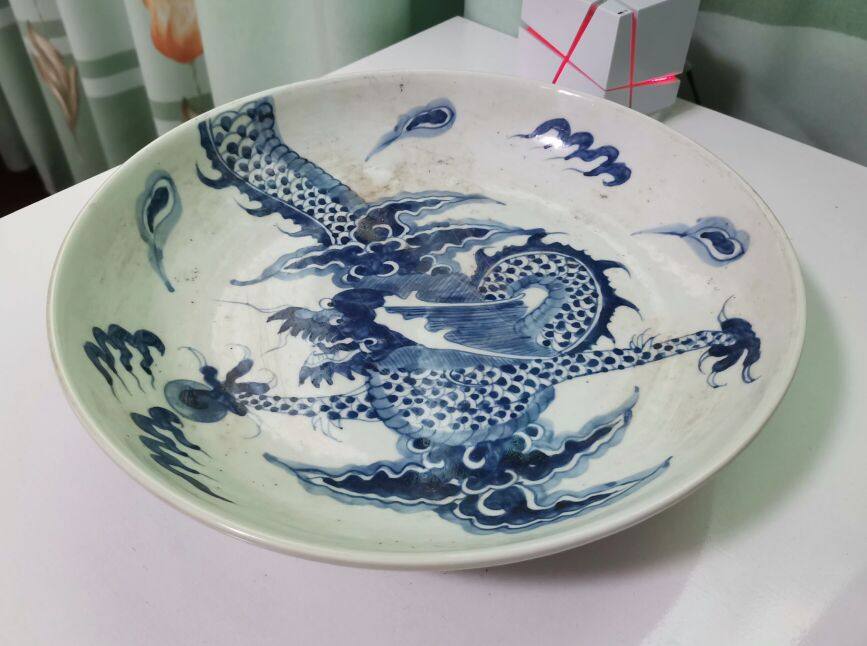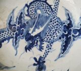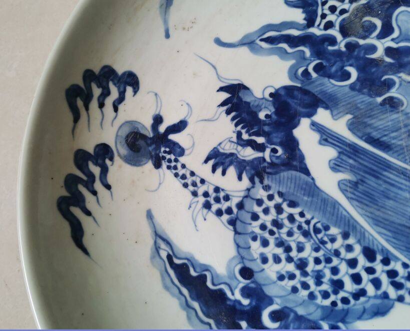 Старый сине -белый фарфор, пересекающий стенную дракон