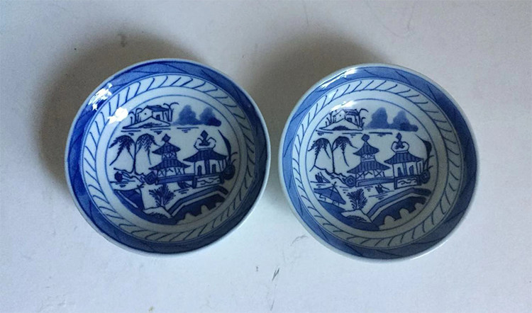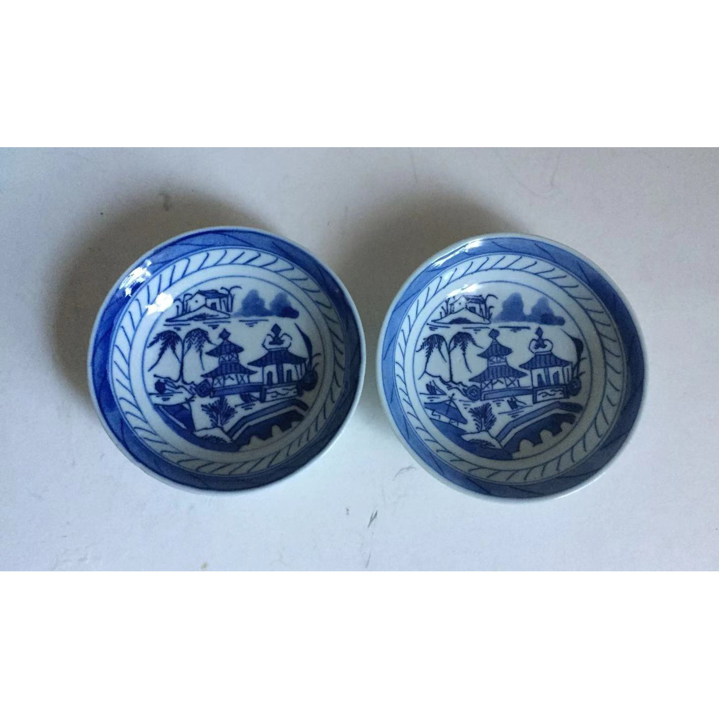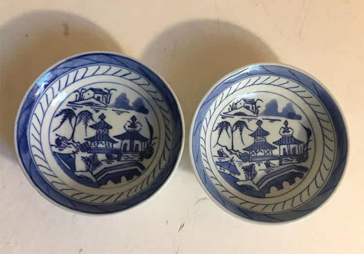 Старая фарфоровая очистка синие и белые пейзажные ручки (один разговор) пара антикварных коллекций
