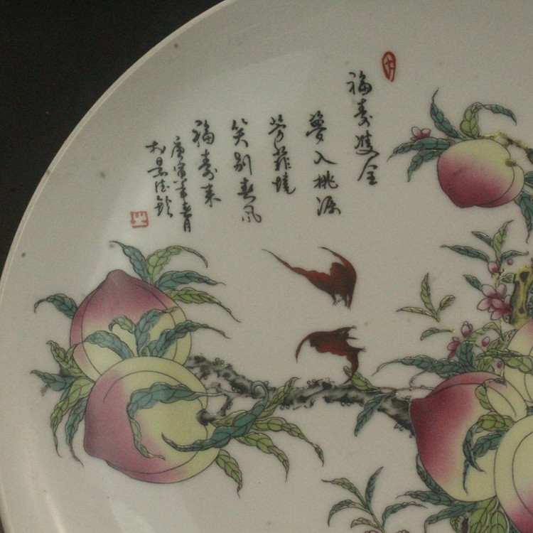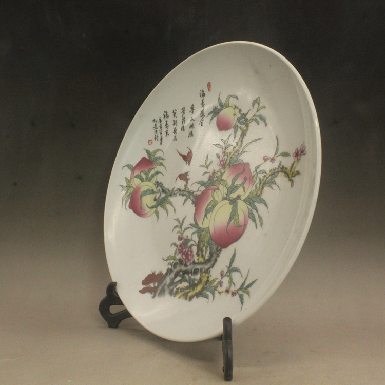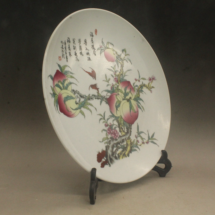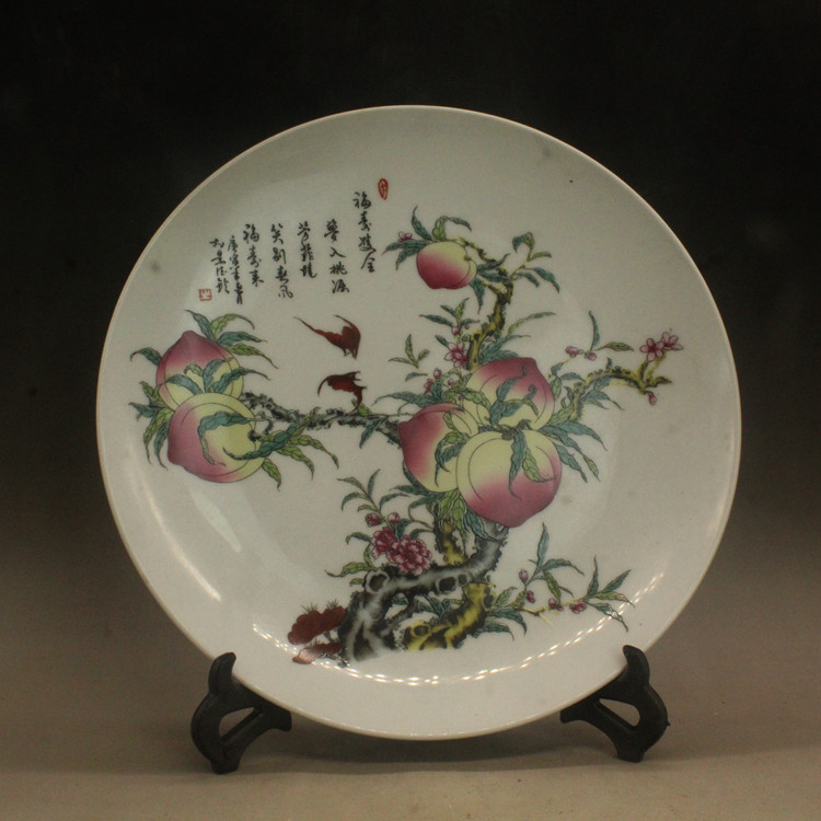 (Средний размер) Цин Цяньлонг пастельный цвет окрашенные в течение жизни Персиковая фарфоровая плита украшения антикварные антикварные фарфоровые антикварные фарфоровые украшения антикварные фарфоровые украшения