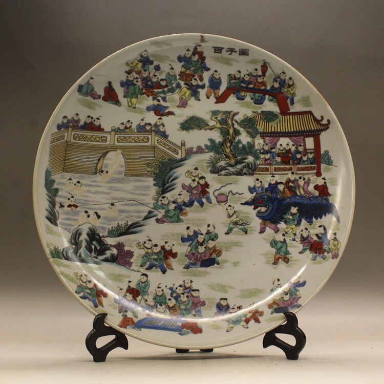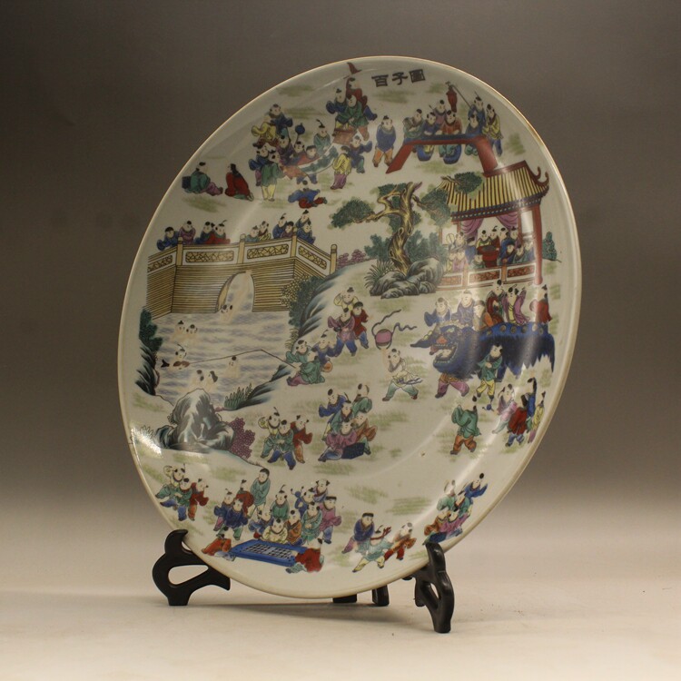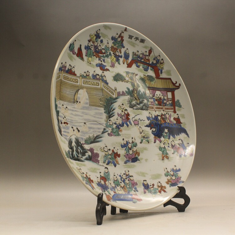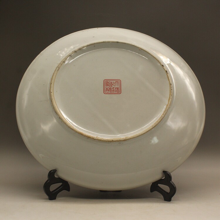 Большая фарфоровая пластина Qing Qianlong Pink Bai Zitu (Out 34 см) Античный фарфоровый фарфор фарфор